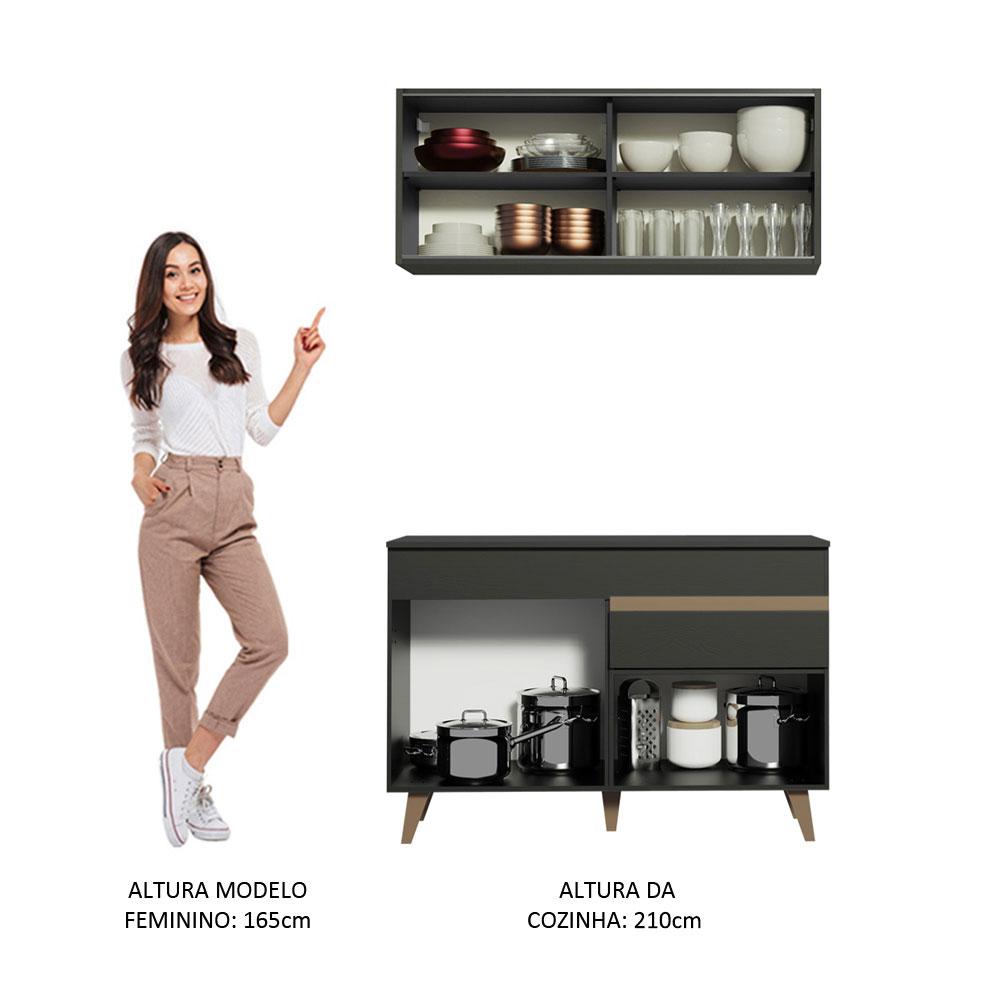 Armário de Cozinha Compacta 120cm Preto Reims Madesa 01