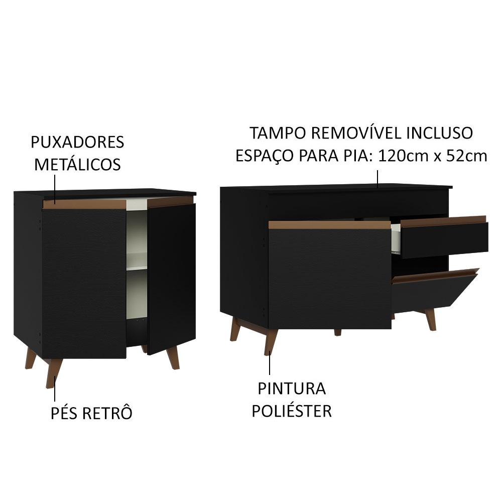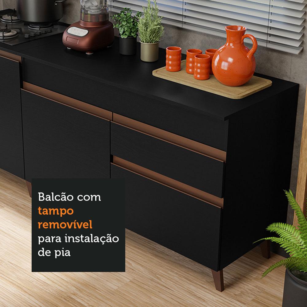 Kit com 2 Balcões de Cozinha Madesa Reims 4 Portas 1 Gaveta (Com Tampo) - Preto