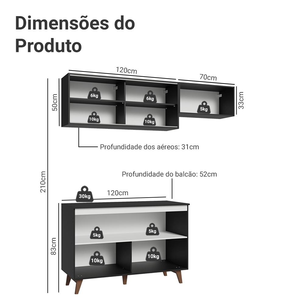 Cozinha Compacta Reims da Madesa: o casamento perfeito entre o moderno e o retrô.Fabricada com itens de qualidade, possui corrediças e dobradiças metálicas, puxadores embutidos de alumínio e elegantes pés retrô de madeira maciça. Os vidros no modelo reflex no aéreo deixam o móvel ainda mais sofisticado.Com ótimo espaço para utensílios e louças, a cozinha é composta por três módulos separados e adaptáveis ao espaço que você tem disponível. O balcão ainda conta com tampo em MDP, que pode ser removido para instalação de pia de 120 x 52 cm.E para completar, o acabamento preto em alta resistência proporciona maior durabilidade ao móvel.Medidas totais:- 190 cm de largura- 210 cm de altura- 52 cm de profundidade no balcão e 31 cm nos aéreosItens inclusos:- Um (1) Aéreo de 120 cm com duas (2) portas- Um (1) Balcão de 120 cm com duas (2) portas e tampo- Um (1) Aéreo de 70 cm com uma (1) porta basculanteCódigo do produto: GRRM1900098NObs.:- A Madesa não disponibiliza serviço de montagem- O produto segue com manual e todas as ferragens necessárias para a instalação- Imagens meramente ilustrativas, os eletros e as decorações não acompanham o produtoA Madesa se dedica à sustentabilidade com várias iniciativas: temos uma usina própria para gerar energia que abastece uma de nossas fábricas. Selecionamos nossos fornecedores, priorizando aqueles que possuem um compromisso com a sustentabilidade e proteção do meio ambiente. Todo o plástico utilizado no setor produtivo é proveniente de reciclagem e as suas sobras são encaminhadas ao fornecedor que os recicla. Também investimos no desenvolvimento contínuo de nossos colaboradores e em ações educacionais que beneficiem a comunidade.