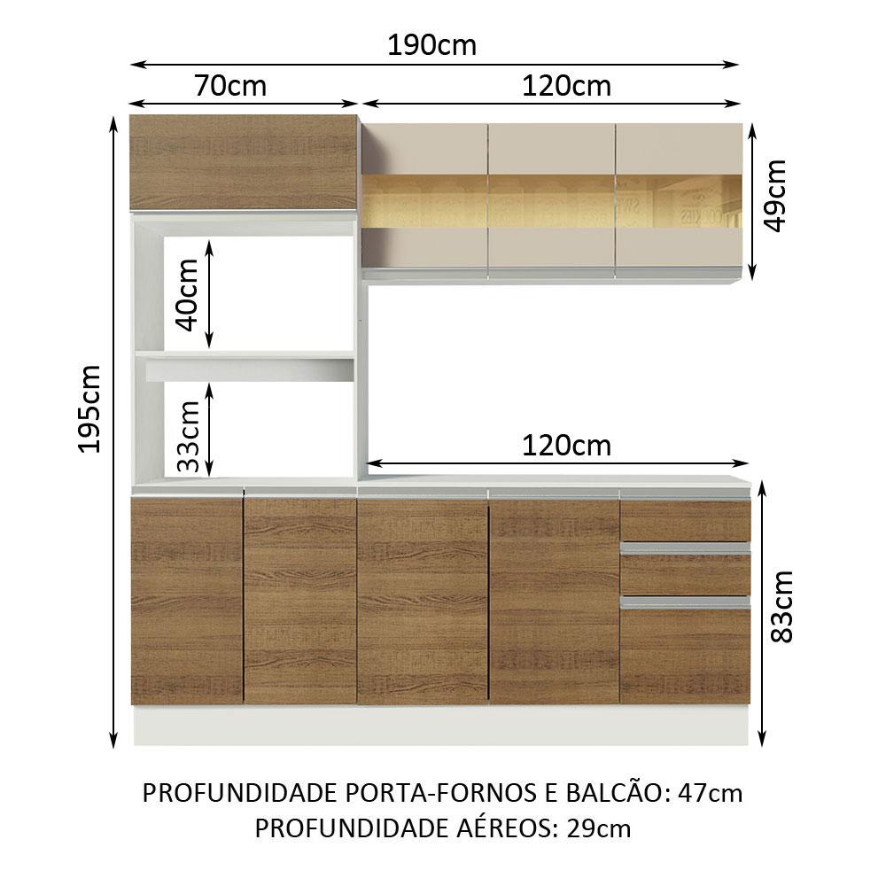 Armário de Cozinha Compacta 100% MDF 190 cm Branco/Rustic/Crema Smart Madesa 01