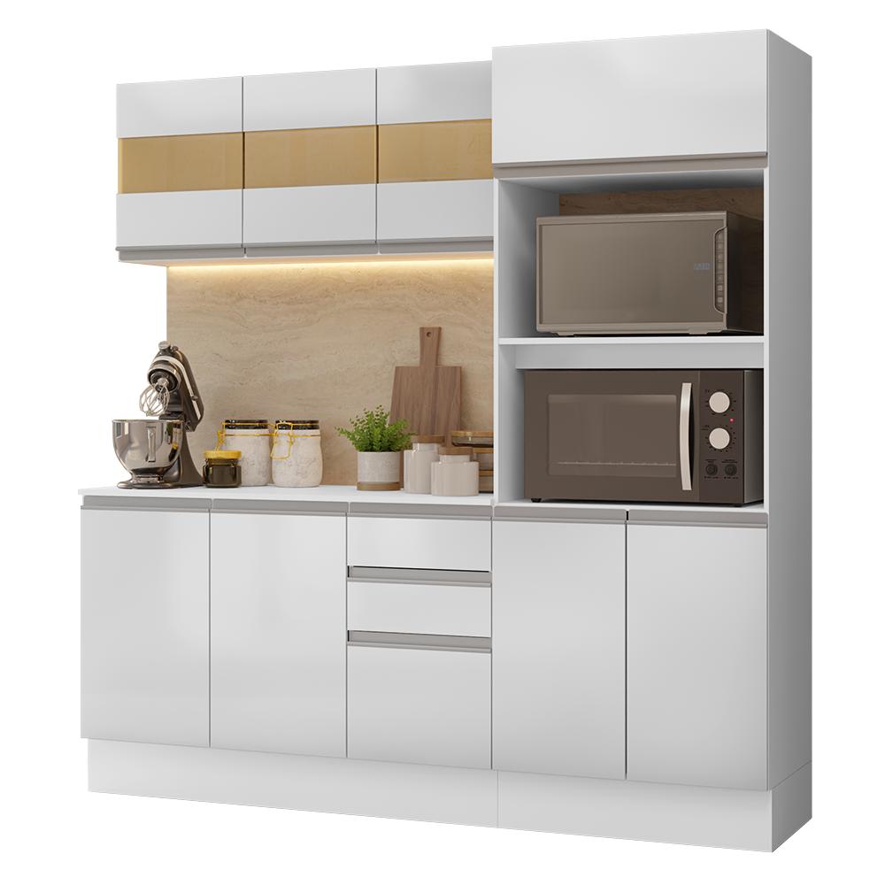 Armário de Cozinha Completa 100% MDF 190cm Smart Branco Brilhante Madesa 01