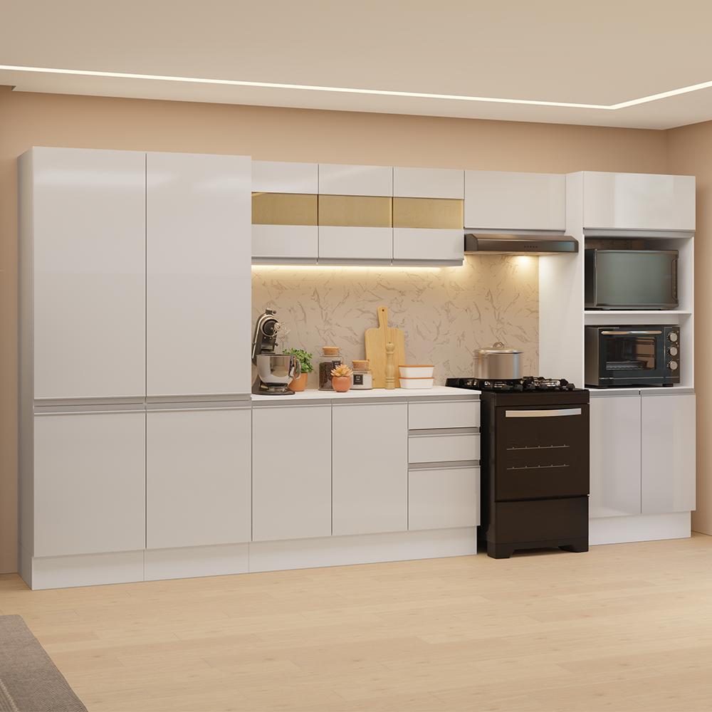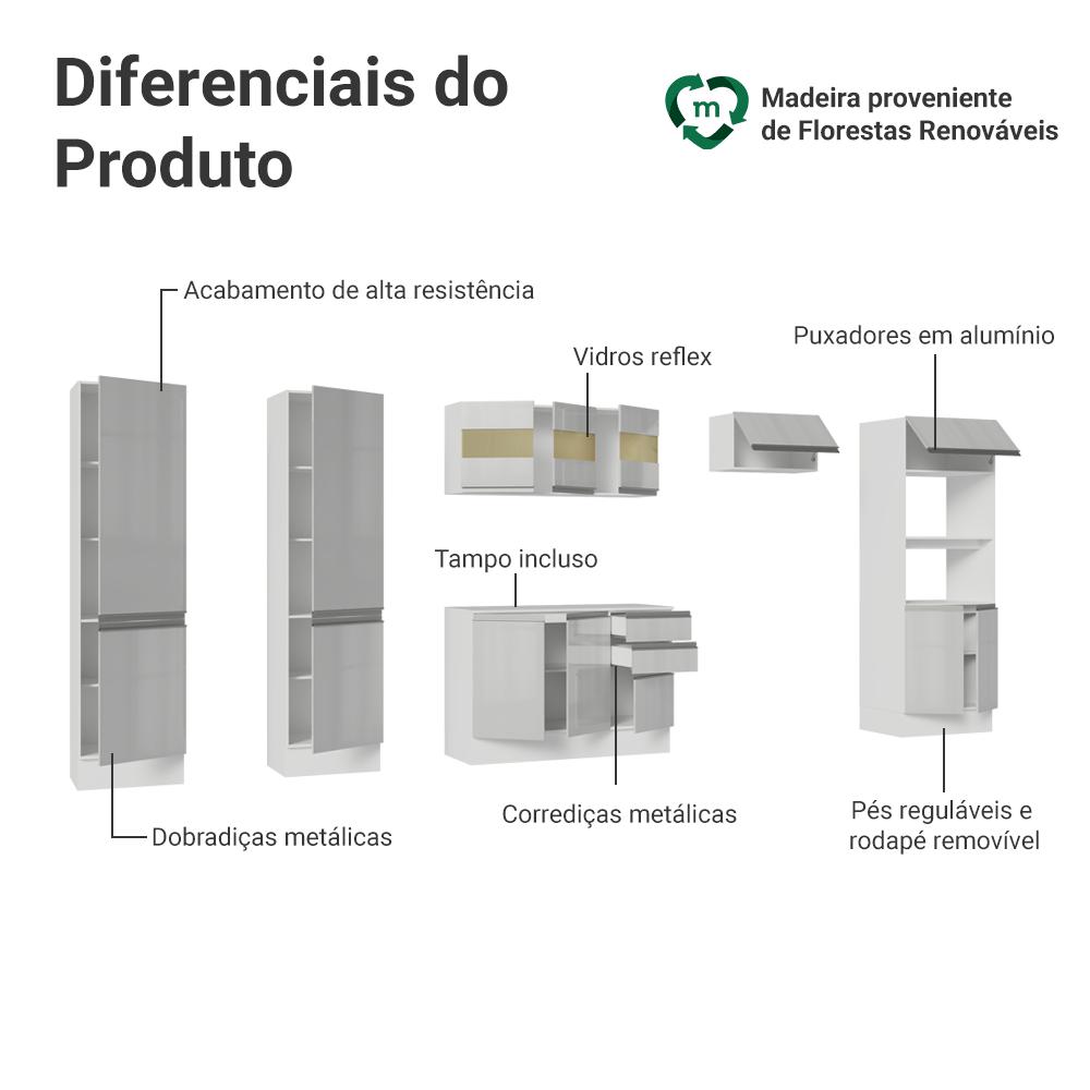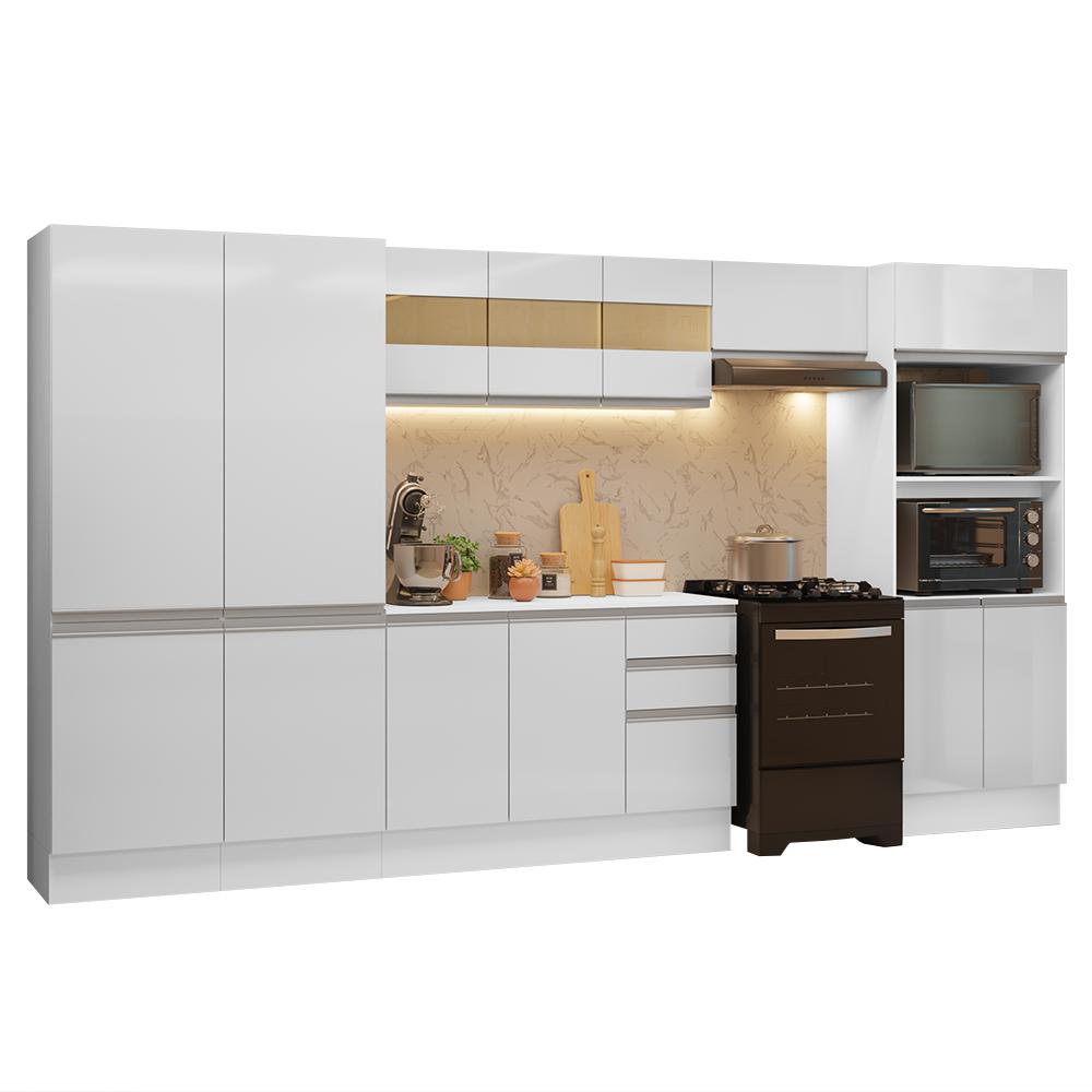 Armário de Cozinha Completa 100% MDF 350cm Smart Branco Brilhante Madesa 01