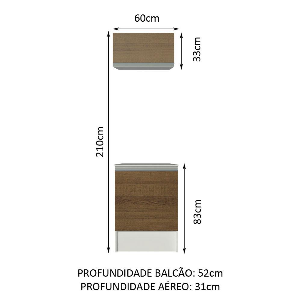 Kit Madesa Topazio 60 cm 2 Portas com Armário Aéreo e Balcão - Branco/Rustic