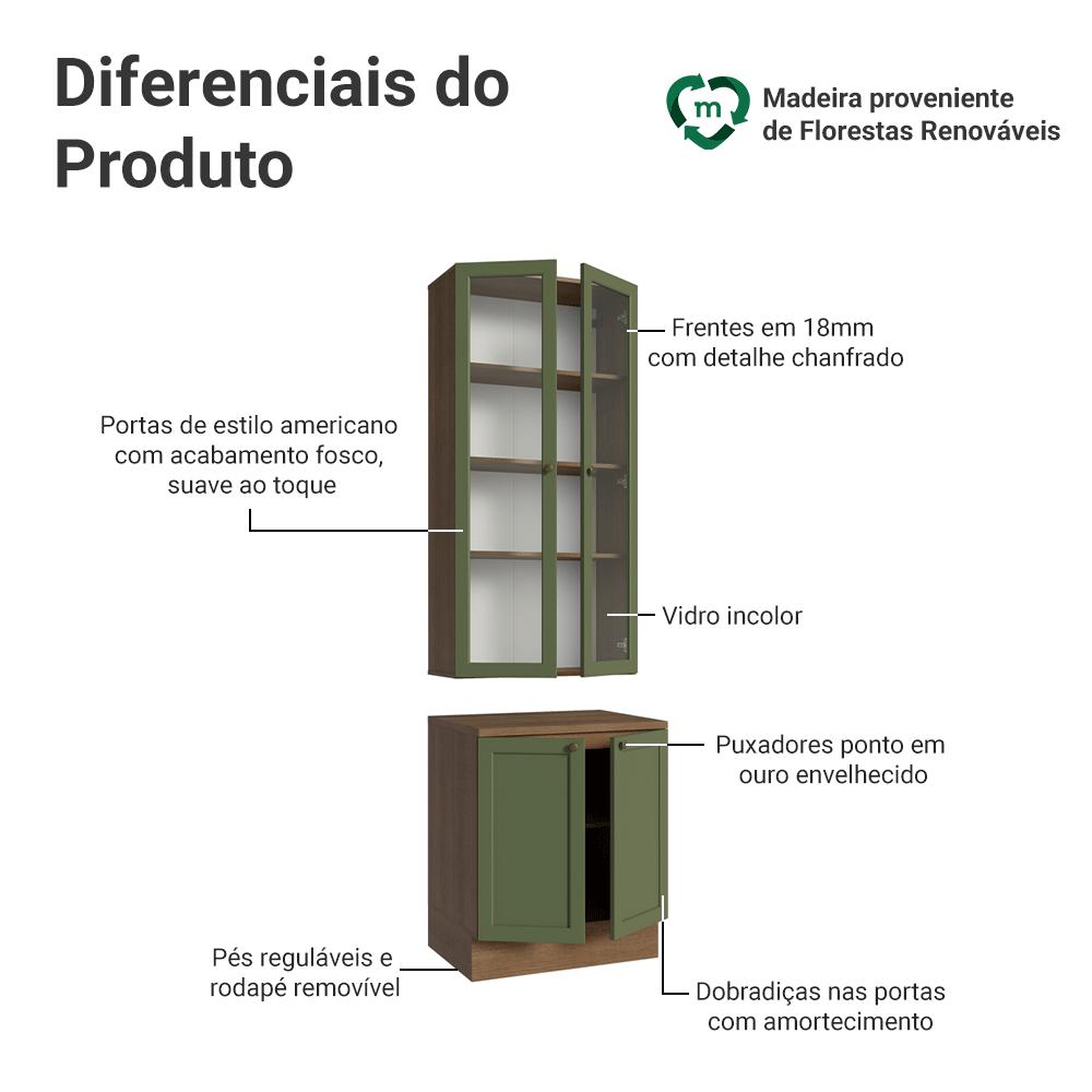 Kit Balcão + Cristaleira 70 cm Rustic/Verde Vik Madesa 02
