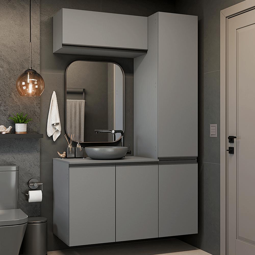 Se o seu banheiro precisa de mais praticidade e um toque moderno, o conjunto Nice da Madesa é a escolha ideal.Formado por um balcão com duas portas, um armário com diversas prateleiras internas, e um aéreo com porta basculante. Cada módulo foi pensado para oferecer excelente aproveitamento de espaço, ajudando a manter o banheiro sempre organizado e funcional.O acabamento em tom cinza transmite um visual moderno e elegante, com uma tonalidade que combina facilmente com diferentes estilos de decoração. Já os puxadores no tom titanium complementam o design com um toque contemporâneo.Produzido com materiais de qualidade, possui dobradiças metálicas nas portas e puxadores em perfil de alumínio, garantindo resistência. A porta basculante possui pistão, que a mantém suspensa enquanto está aberta, oferecendo mais conforto e segurança no uso e o acabamento é de alta resistência, garantindo durabilidade.Medidas totais:- 195cm de altura- 120cm de largura- 31cm de profundidade no aéreo e 52cm no balcão e no armárioO que você recebe:- Um Balcão com duas portas- Um Armário com duas portas- Um Armário aéreo com uma porta basculante- Manual de montagem e ferragensCódigo do produto: MDBA0300023BÉ importante saber:- Material: MDP- Imagens meramente ilustrativas, a decoração não acompanha o produto.- A Madesa não oferece serviço de montagem.- O móvel não acompanha pés, deve ser instalado de forma suspensa, com fixação na parede.A Madesa se dedica à sustentabilidade com várias iniciativas: temos uma usina própria que gera energia para uma das fábricas. Priorizamos fornecedores responsáveis com o meio ambiente. Todo o plástico utilizado na produção é reciclado, e as sobras também são reaproveitadas. Investimos no desenvolvimento de nossos colaboradores e em ações que beneficiem a comunidade.
