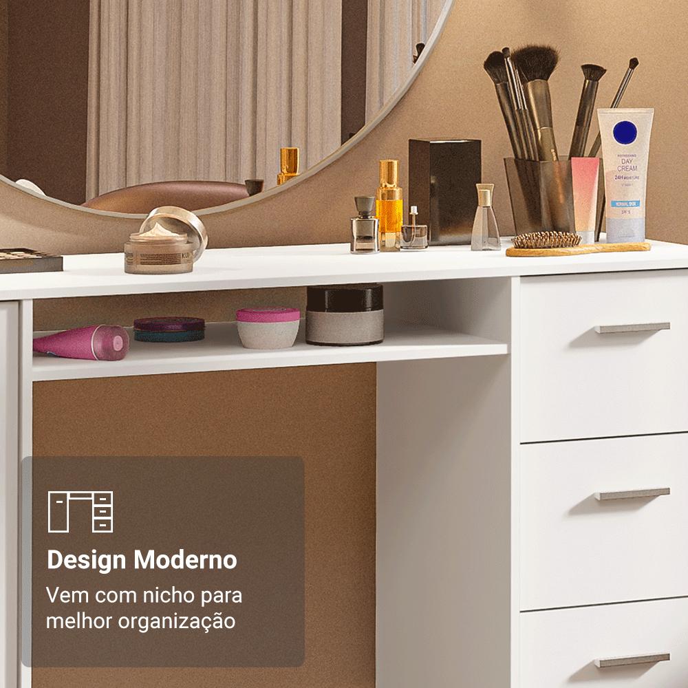 Escrivaninha Penteadeira 136cm 1 Porta 3 Gavetas Branco Madesa