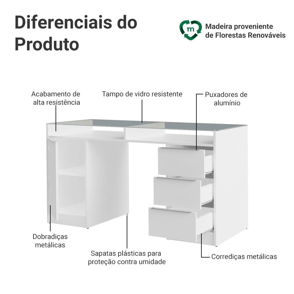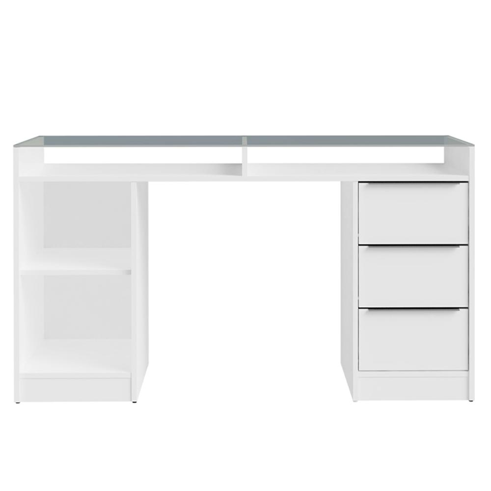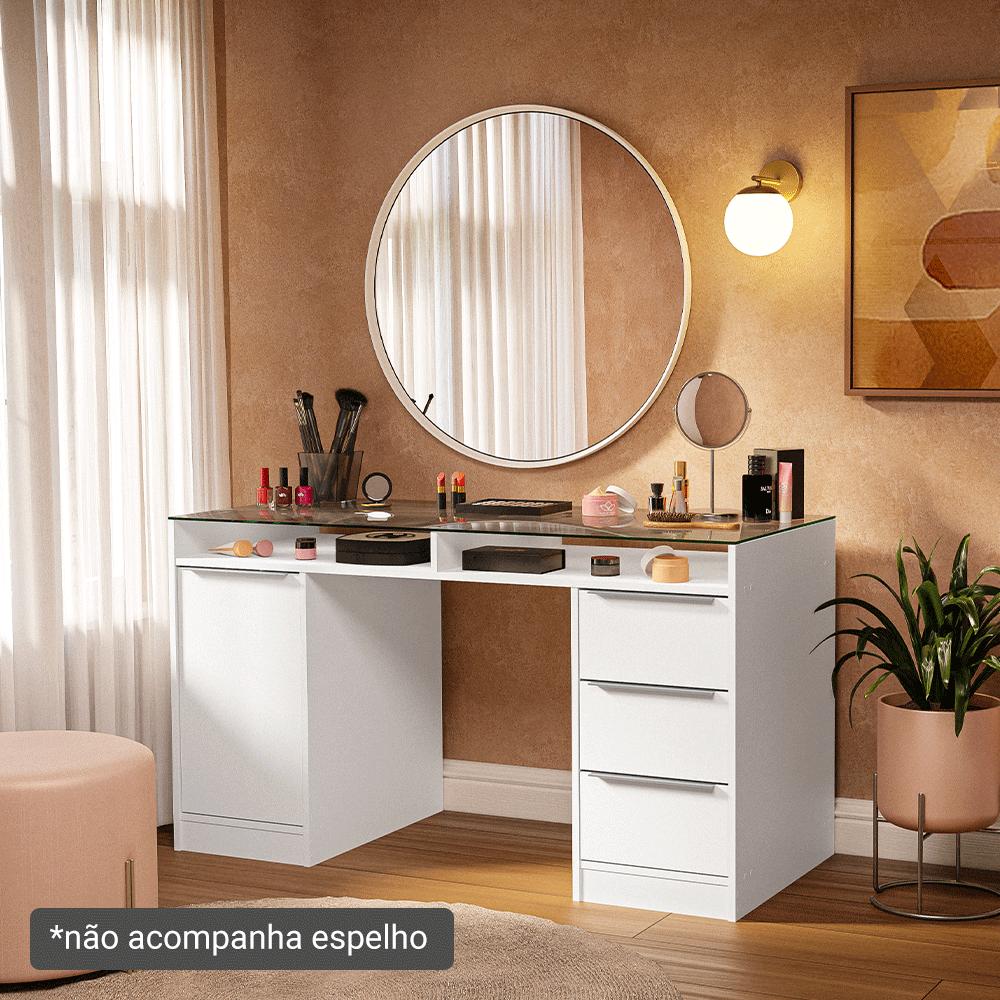 Escrivaninha Penteadeira 136cm 1 Porta 3 Gavetas Tampo de Vidro Branco Madesa