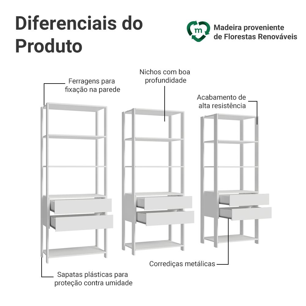 O Closet modulado Valencia une funcionalidade e um design moderno. Composto por três módulos abertos, ele oferece um layout inteligente que garante fácil acesso às roupas e acessórios, mantendo tudo à mão no dia a dia. Cada módulo possui duas gavetas espaçosas e quatro prateleiras amplas, garantindo um espaço de armazenamento eficiente e organizado.Além disso, o móvel conta com acabamento branco de alta resistência, pés com sapatas plásticas que protegem contra a umidade e ferragens incluídas para a fição na parede, garantindo mais estabilidade e segurança.Medidas totais:- 180 cm de altura- 210 cm de largura- 45 cm de profundidadeO que você recebe: - Três Closets abertos de 70 cm com duas gavetas e quatro prateleiras cadaCódigo do produto: MDDR03001109É importante saber:- Imagens meramente ilustrativas, a decoração não acompanha o produto.- A Madesa não oferece serviço de montagem.- O produto segue com manual e todas as ferragens necessárias para a instalação.- Por segurança, é obrigatório fir o móvel na parede.A Madesa se dedica à sustentabilidade com várias iniciativas: temos uma usina própria que gera energia para uma das fábricas. Priorizamos fornecedores responsáveis com o meio ambiente. Todo o plástico utilizado na produção é reciclado, e as sobras também são reaproveitadas. Investimos no desenvolvimento de nossos colaboradores e em ações que beneficiem a comunidade.