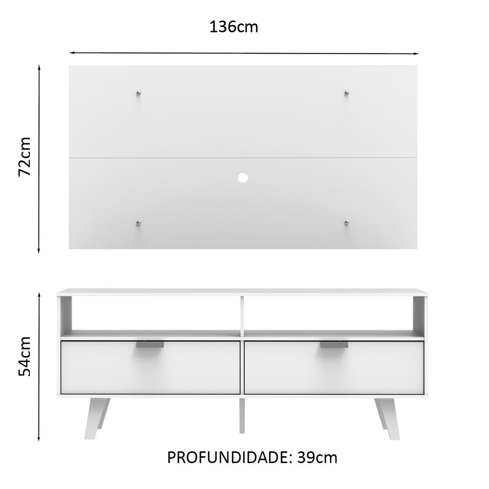O kit Rack Oslo e Painel para TV da Madesa é a opção ideal para sua sala se tornar um lugar funcional e agradável.O Rack Oslo tem design moderno, possui duas portas basculantes e dois nichos abertos para os aparelhos eletrônicos. Assim, possui espaço para objetos decorativos, livros, dvd ou o que mais você quiser. O Painel comporta TVs de até 55 polegadas.O acabamento dos móveis é branco, feito em Pintura Poliéster de alta resistência, processo ecológico e que confere mais qualidade e durabilidade ao produto.Imagem meramente ilustrativa.Itens inclusos:- Um (1) Rack com 54 cm de altura x 136 cm de largura x 39 cm de profundidade.- Um (1) Painel para TV com 72 cm de altura por 136 cm de larguraCódigo do produto: MDES02000609Obs.: A Madesa não disponibiliza serviço de montagem. O produto segue com manual de instalação e todas as ferragens necessárias para sua montagem.1-O produto é novo ou usado?R.: Todos os produtos da Madesa são novos, enviados da nossa fábrica diretamente para as casas de nossos clientes.2-O produto vem montado? Se não, vocês realizam a montagem?R.: A Madesa não disponibiliza serviço de montagem. Todos os produtos seguem com manual de instalação e as ferragens necessárias. Alguns produtos possuem vídeo explicando o passo a passo da montagem.3-Vocês possuem loja física? Posso retirar meu produto em mãos?R.: Não possuímos loja física, apenas loja virtual. Confira as opções de envio ao colocar o seu CEP.4-Qual é o valor do envio? Posso pagar separadamente?R.: O valor do envio é calculado com base no peso e volume do produto, e no CEP de destino. Você pode calcular o valor e prazo de entrega no simulador.5-A Madesa entrega em todo Brasil? Como é feita a entrega?R.: Sim, entregamos no Brasil inteiro através de transportadoras parceiras.6-O produto acompanha Nota Fiscal?R.: Sim, todos os produtos são entregues com suas respectivas notas fiscais.7-Os produtos possuem garantia?R.: Sim. A Madesa oferece 3 meses de garantia para defeitos de fabricação.A Madesa se dedica à sustentabilidade com várias iniciativas: temos uma usina própria para gerar energia que abastece uma de nossas fábricas. Selecionamos nossos fornecedores, priorizando aqueles que possuem um compromisso com a sustentabilidade e proteção do meio ambiente. Todo o plástico utilizado no setor produtivo é proveniente de reciclagem e as suas sobras são encaminhadas ao fornecedor que os recicla. Também investimos no desenvolvimento contínuo de nossos colaboradores e em ações educacionais que beneficiem a comunidade.