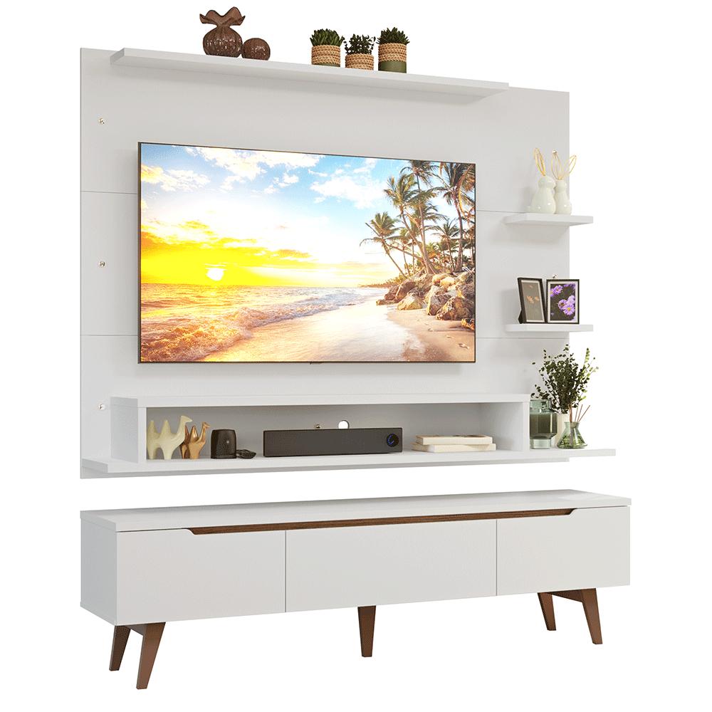 Rack com Painel para TV até 60 Polegadas 180 cm com Pés Branco/Rustic Reims Madesa