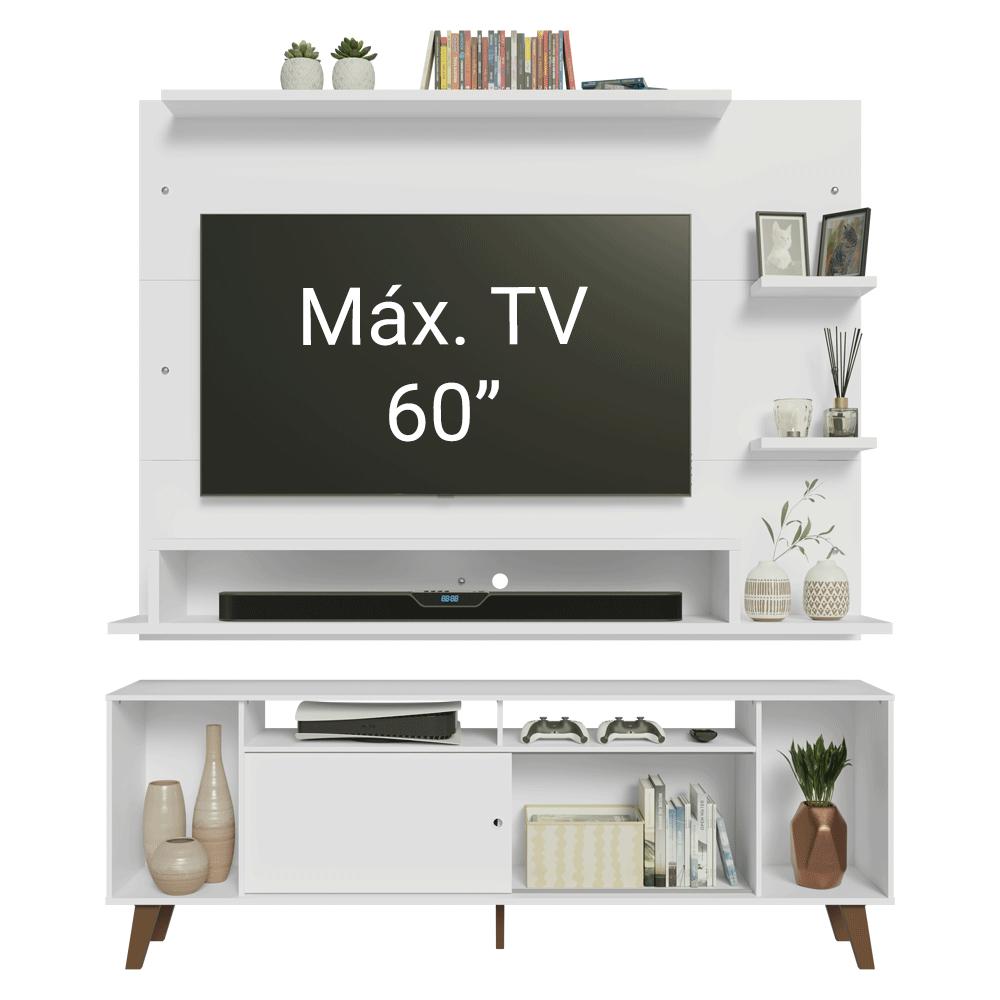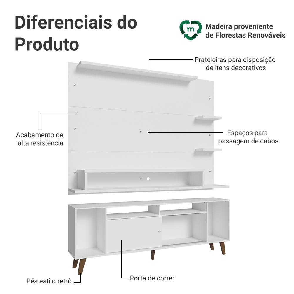 O Conjunto de Rack e Painel para TV Cancun da Madesa é versátil e pensado para transformar seu ambiente.O Painel para TV comporta TVs de até 60 polegadas e conta com espaço para passagem de fios e cabos, ajudando a manter tudo organizado. O Rack possui nichos de tamanhos variados, com espaços que facilitam a organização. Os pés elevam o móvel, melhoram a sustentação e completam o visual com um toque moderno.O acabamento de alta resistência branco traz leveza e luminosidade ao ambiente, enquanto os pés em amadeirado Rustic criam um contraste elegante, unindo durabilidade e estilo atemporal.Medidas do Painel:- 135 cm de altura- 180 cm de largura- 32 cm de profundidadeMedidas do Rack:- 64 cm de altura- 180 cm de largura- 32 cm de profundidadeInformações técnicas:- Material: MDP- Peso total suportado: 116 kg- Altura dos pés: 16 cm O que você recebe:- Um Painel para TV de até 60 Polegadas- Um Rack de 180 cm de largura com pésCódigo do produto: MDES020046J5É importante saber:- Imagens meramente ilustrativas, a decoração não acompanha o produto.- A Madesa não oferece serviço de montagem- O produto segue com manual e todas as ferragens necessárias.A Madesa possui compromisso com a sustentabilidade. Geramos energia limpa em nossa própria usina, priorizamos fornecedores responsáveis e utilizamos plástico reciclado em nossa produção. Além disso, reinserimos sobras no ciclo de reciclagem e investimos no desenvolvimento de nossos colaboradores e da comunidade.Garantia: Este produto conta com 1 ano de garantia total, sendo 3 meses de garantia legal e 9 meses de garantia contratual. A garantia cobre exclusivamente defeitos de fabricação e vícios ocultos. Não estão cobertos: problemas decorrentes de montagem incorreta, uso inadequado, exposição à umidade, calor ou luz solar direta, modificações no produto ou desgaste natural.