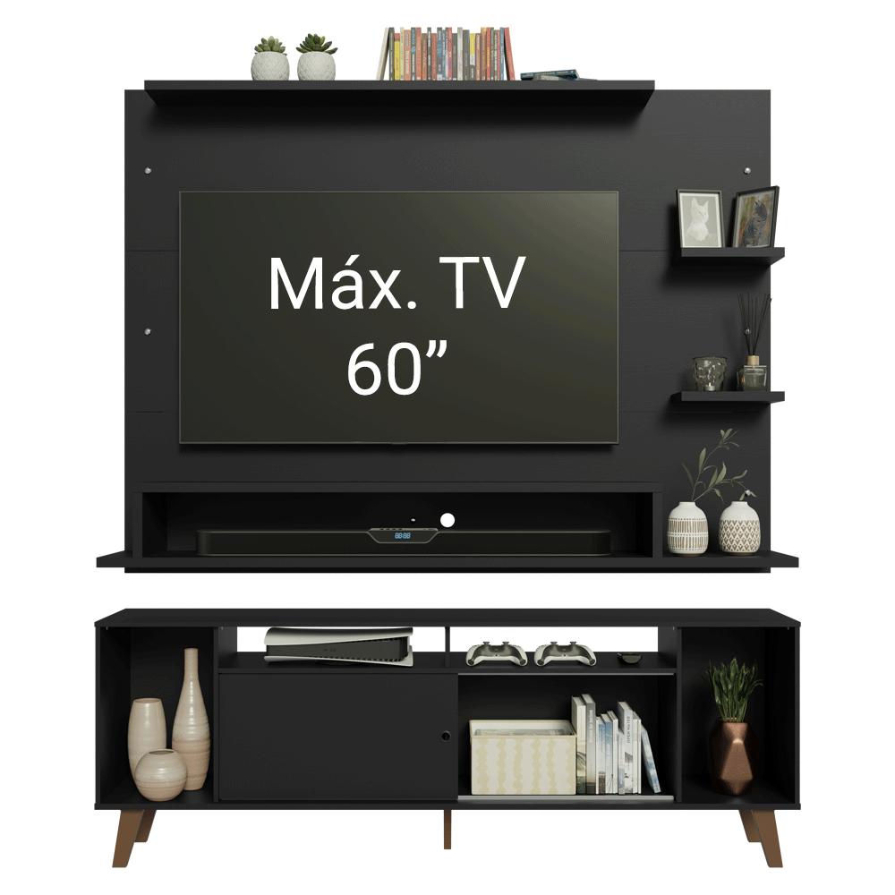O Conjunto de Rack e Painel para TV Cancun da Madesa é versátil e pensado para transformar seu ambiente.O Painel para TV comporta TVs de até 60 polegadas e conta com espaço para passagem de fios e cabos, ajudando a manter tudo organizado. O Rack possui nichos de tamanhos variados, com espaços que facilitam a organização. Os pés elevam o móvel, melhoram a sustentação e completam o visual com um toque moderno.O acabamento de alta resistência em preto confere um visual moderno e sofisticado ao conjunto, enquanto os pés em amadeirado Rustic trazem mais personalidade. Medidas do Painel:- 135 cm de altura- 180 cm de largura- 32 cm de profundidadeMedidas do Rack:- 64 cm de altura- 180 cm de largura- 32 cm de profundidadeInformações técnicas:- Material: MDP- Peso total suportado: 116 kg- Altura dos pés: 16 cm O que você recebe:- Um Painel para TV de até 60 Polegadas- Um Rack de 180 cm de largura com pésCódigo do produto: MDES020046N5É importante saber:- Imagens meramente ilustrativas, a decoração não acompanha o produto.- A Madesa não oferece serviço de montagem- O produto segue com manual e todas as ferragens necessárias.A Madesa possui compromisso com a sustentabilidade. Geramos energia limpa em nossa própria usina, priorizamos fornecedores responsáveis e utilizamos plástico reciclado em nossa produção. Além disso, reinserimos sobras no ciclo de reciclagem e investimos no desenvolvimento de nossos colaboradores e da comunidade.Garantia: Este produto conta com 1 ano de garantia total, sendo 3 meses de garantia legal e 9 meses de garantia contratual. A garantia cobre exclusivamente defeitos de fabricação e vícios ocultos. Não estão cobertos: problemas decorrentes de montagem incorreta, uso inadequado, exposição à umidade, calor ou luz solar direta, modificações no produto ou desgaste natural.