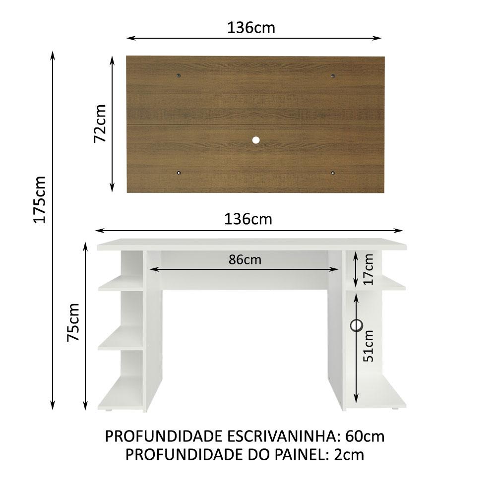 O Conjunto da Mesa Gamer 9409 da Madesa + Painel para TV oferece conforto, otimização de espaço e um design moderno.A mesa comporta perfeitamente todos os acessórios. Possui também diversas prateleiras, perfeitas para CPU, console, jogos e outros objetos decorativos. Além disso, pode ser utilizada como escrivaninha para trabalho ou estudo.Já o painel suporta TV de até 50 polegadas possui abertura central para passagem dos fios, deixando tudo muito mais organizado. É de fácil instalação, conta com passa fios e capas decorativas para esconder os parafusos de fixação.O acabamento da mesa é branco e o do painel é no padrão amadeirado Rustic. O processo é feito em Pintura Poliéster ecológica com 7 camadas de proteção.Imagens meramente ilustrativas. Não acompanha a decoração e o painel não acompanha suporte para fixação da TV.Itens inclusos:- Uma (1) Mesa Gamer com 75 cm de altura, 136 cm de largura e 60 cm de profundidade- Um (1) Painel com 72 cm de altura, 136 cm de largura e 2 cm de profundidadeCódigo do produto: MDFC0200019BObs.: A Madesa não disponibiliza serviço de montagem. O produto acompanha ferragens e manual com todos os passos para a instalação da mesa.1 – O produto é novo ou usado?R.: Todos os produtos da Madesa são novos, enviados da nossa fábrica diretamente para as casas de nossos clientes.2 – O produto vem montado? Se não, vocês realizam a montagem?R.: A Madesa não disponibiliza serviço de montagem. Todos os produtos seguem com manual de instalação e as ferragens necessárias. Alguns produtos possuem vídeo explicando o passo a passo da montagem.3 – Vocês possuem loja física? Posso retirar meu produto em mãos?R.: Não possuímos loja física, apenas loja virtual. Confira as opções de envio ao colocar o seu CEP.4 – Qual é o valor do envio? Posso pagar separadamente?R.: O valor do envio é calculado com base no peso e volume do produto, e no CEP de destino. Você pode calcular o valor e prazo de entrega no simulador.5 – A Madesa entrega em todo Brasil? Como é feita a entrega?R.: Sim, entregamos no Brasil inteiro através de transportadoras parceiras.6 – O produto acompanha Nota Fiscal?R.: Sim, todos os produtos são entregues com suas respectivas notas fiscais.7 – Os produtos possuem garantia?R.: Sim. A Madesa oferece 3 meses de garantia para defeitos de fabricação.A Madesa se dedica à sustentabilidade com várias iniciativas: temos uma usina própria para gerar energia que abastece uma de nossas fábricas. Selecionamos nossos fornecedores, priorizando aqueles que possuem um compromisso com a sustentabilidade e proteção do meio ambiente. Todo o plástico utilizado no setor produtivo é proveniente de reciclagem e as suas sobras são encaminhadas ao fornecedor que os recicla. Também investimos no desenvolvimento contínuo de nossos colaboradores e em ações educacionais que beneficiem a comunidade.