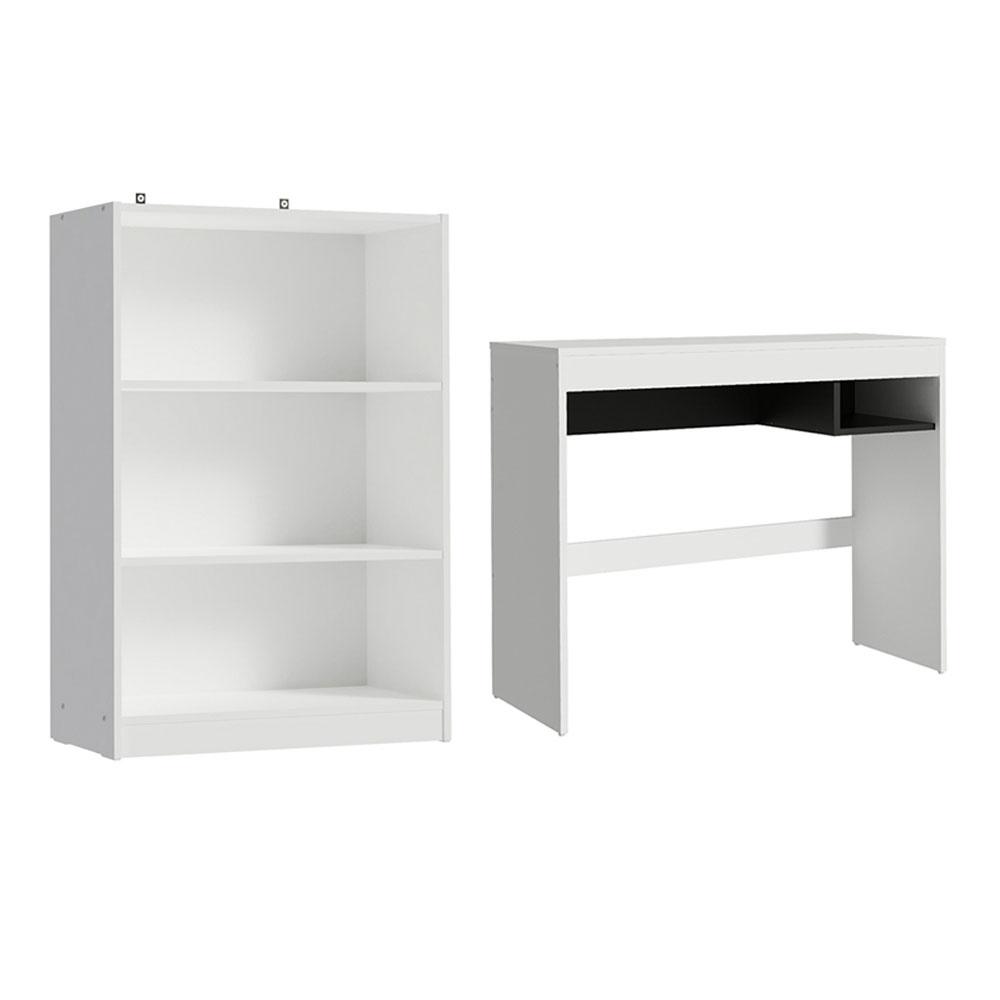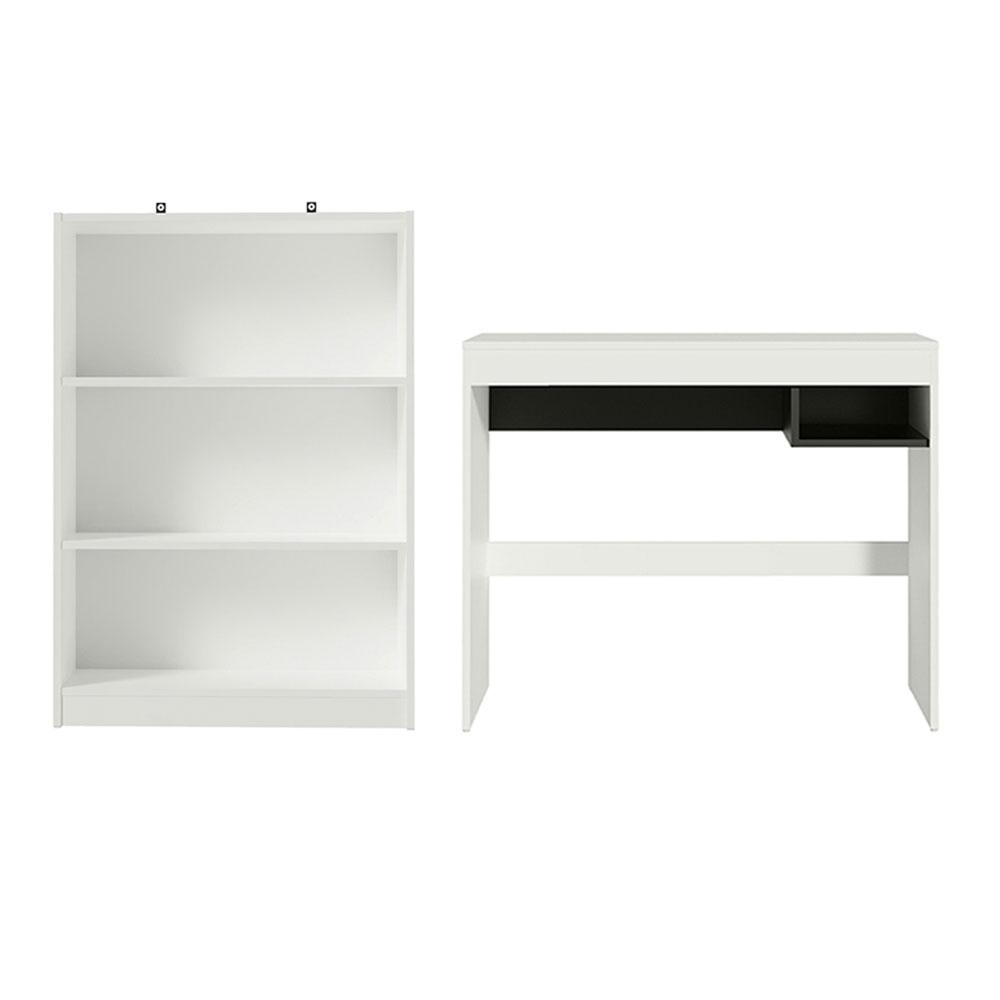 Escrivaninha Madesa Rubi + Estante Livreiro 6907 - Branco