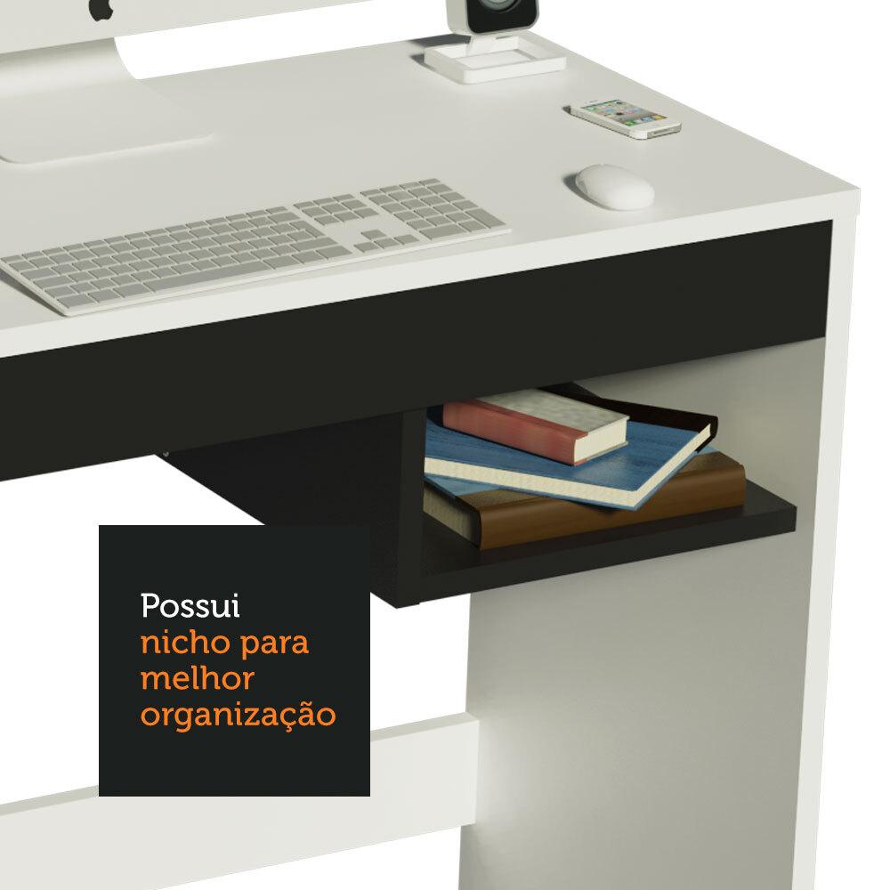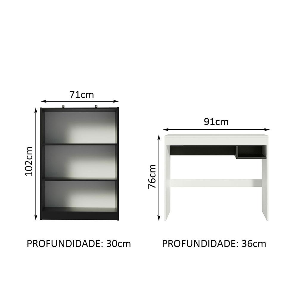 Escrivaninha Madesa Rubi + Estante Livreiro 6907 - Branco/Preto