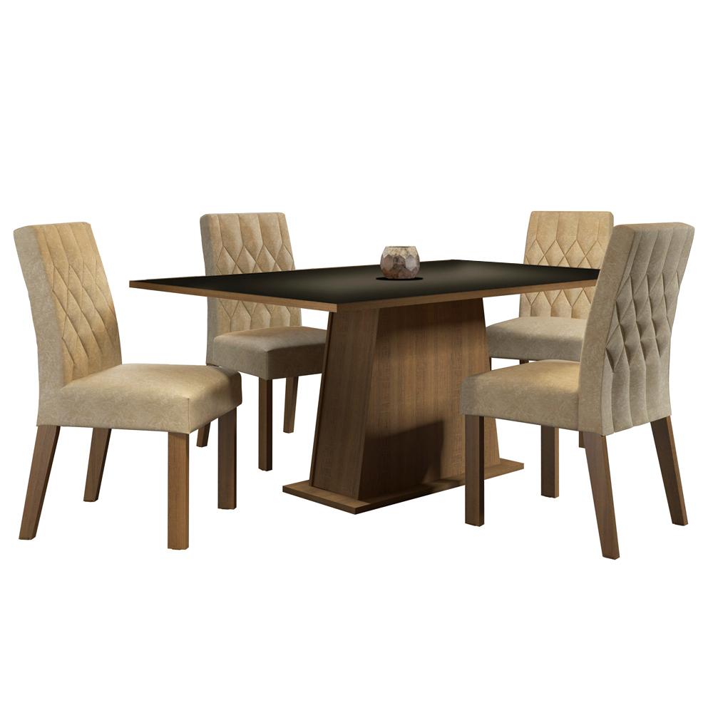 Conjunto Sala de Jantar Madesa Ingrid Mesa Tampo de Madeira com 4 Cadeiras - Rustic/Preto/Imperial
