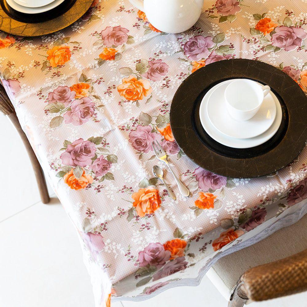 Toalha De Mesa Peva 140x180m - Uzoo Toalha Pronta Peva 1.40x1.80m Rosas Laranja 2366a