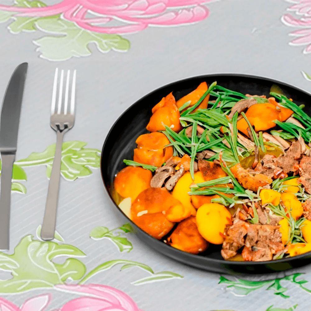 Toalha Pronta Peva Floral Bege 1.40x1.80m - Uzoo Toalha Pronta Peva 1.40x1.80m Floral Bege 5109cToalha Pronta Peva Floral Bege 1,40x1,80m – UzooA Toalha Pronta Peva Floral Bege é perfeita para deixar sua cozinha elegante e ao mesmo tempo delicada. Com textura que lembra tecido e acabamento em barrado nas laterais remetendo à renda, ela une beleza e sofisticação à praticidade do material resistente.Produzida com material impermeável, a toalha protege a mesa de respingos, manchas e riscos, tornando a limpeza simples e rápida. Assim, você mantém sua cozinha sempre bonita e conservada sem preocupações.O detalhe em barrado e a estampa floral adicionam charme e personalidade, tornando o ambiente mais acolhedor e sofisticado, ideal tanto para o uso diário quanto para ocasiões especiais.Principais qualidades do produto: Prática e fácil de limpar Impermeável Resistente e durável Estilo elegante com barrado de renda e estampa floralInstruções de limpeza: Lavar à mão Não usar alvejante à base de cloro Secar na verticalCaracterísticas técnicas: Material base: 30% EVA / 70% PE Material borda: PVC Gramatura: 130 g/m² Dimensões: 1,40 x 1,80 mGarantia: Garantia de 90 dias conforme o artigo 26, inciso II, da Lei nº 8.078/1990 (Código de Defesa do Consumidor), contados a partir da emissão da Nota Fiscal.