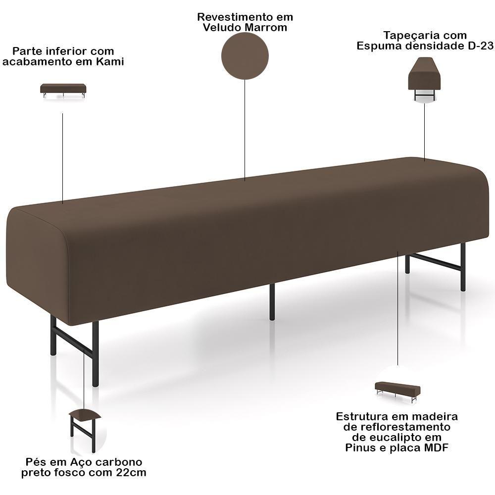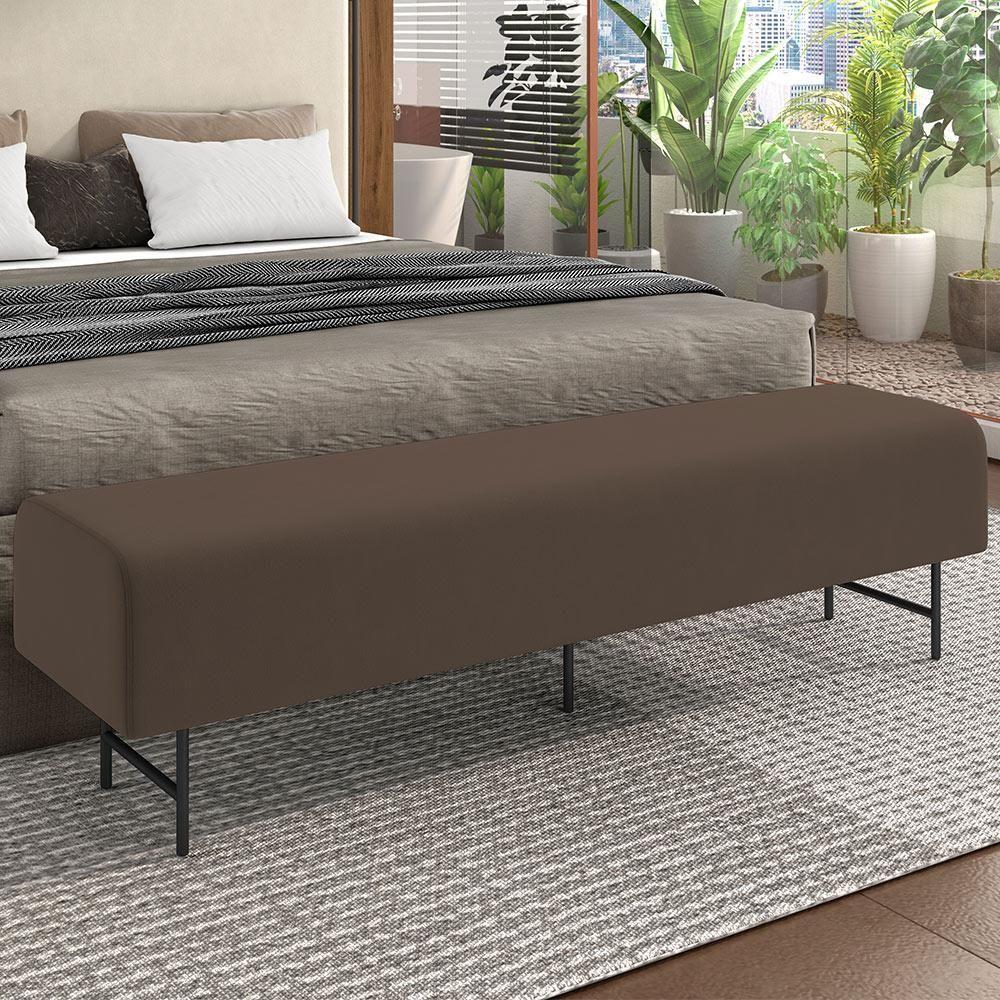 Puff Recamier Decorativo Com Pés Industrial 140cm Novara P05 Veludo Marrom - Lyam Decor