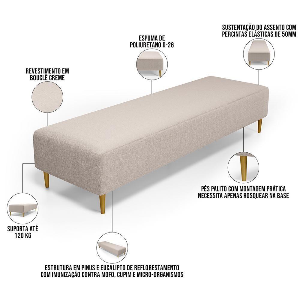Puff Decorativo Sala De Estar Bali W01 Pés Palito 170x60cm Bouclê Creme - Lyam Decor