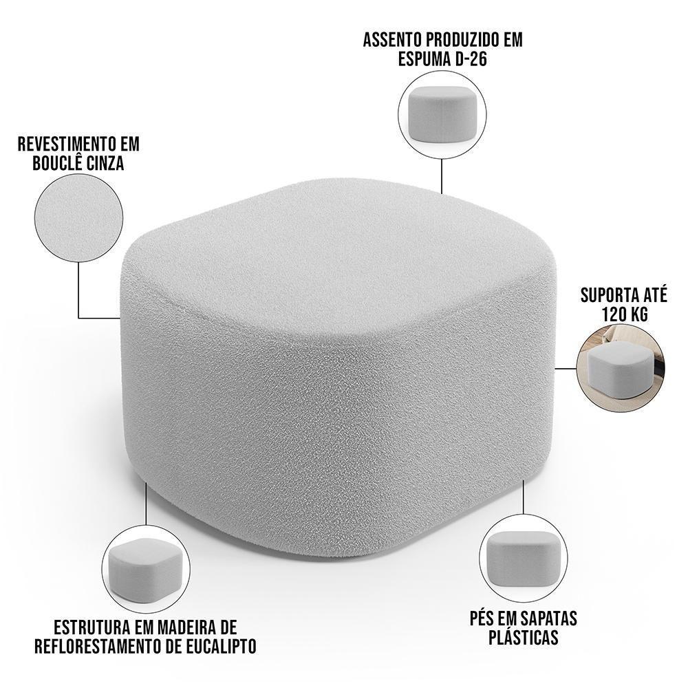 Kit 2 Puffs Decorativos Orgânico Para Living Quarto 70cm Doha W01 Bouclê Cinza - Lyam Decor