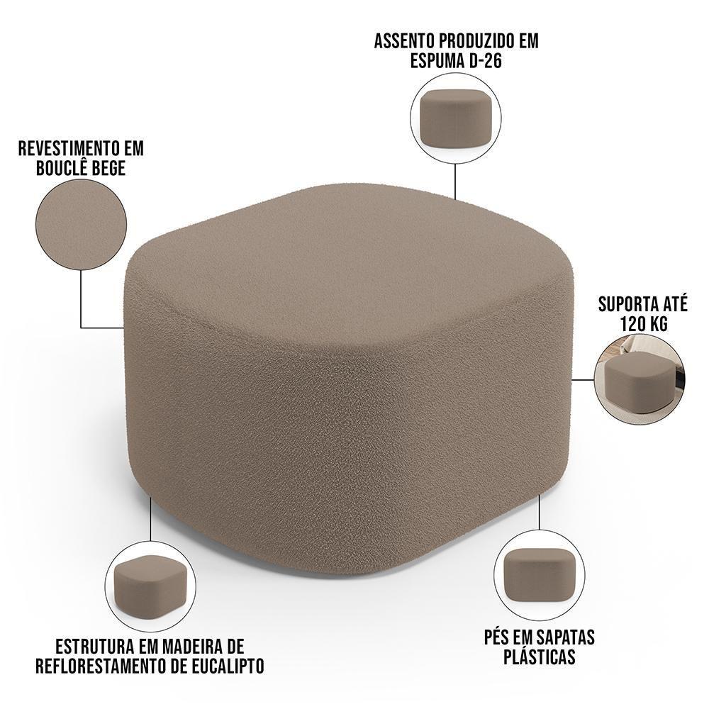 Kit 2 Puffs Decorativos Orgânico Para Living Quarto 70cm Doha W01 Bouclê Bege - Lyam Decor