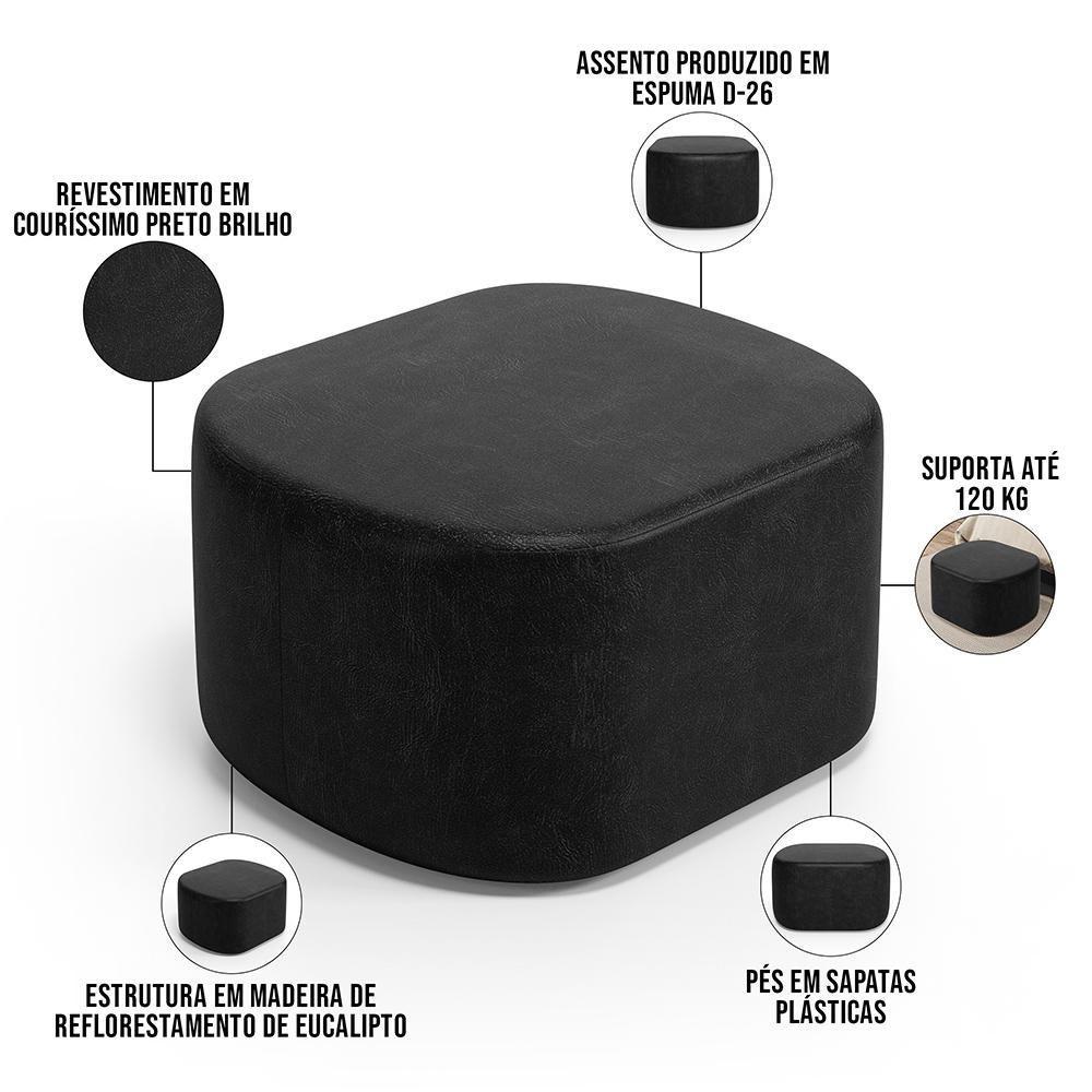 Kit 2 Puffs Decorativos Orgânico Para Living Quarto 70cm Doha W01 Couríssimo Preto - Lyam Decor
