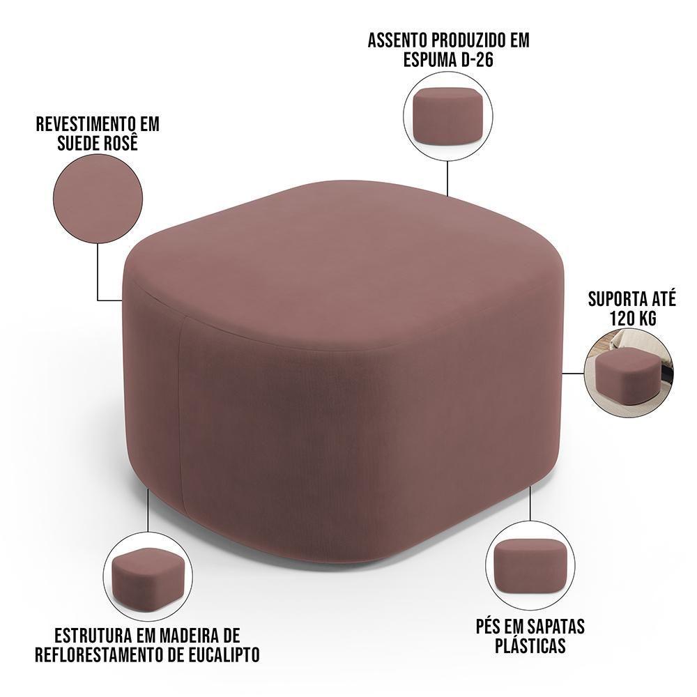 Puff Decorativo Orgânico Para Living Quarto 70cm Doha W01 Suede Rosê - Lyam Decor