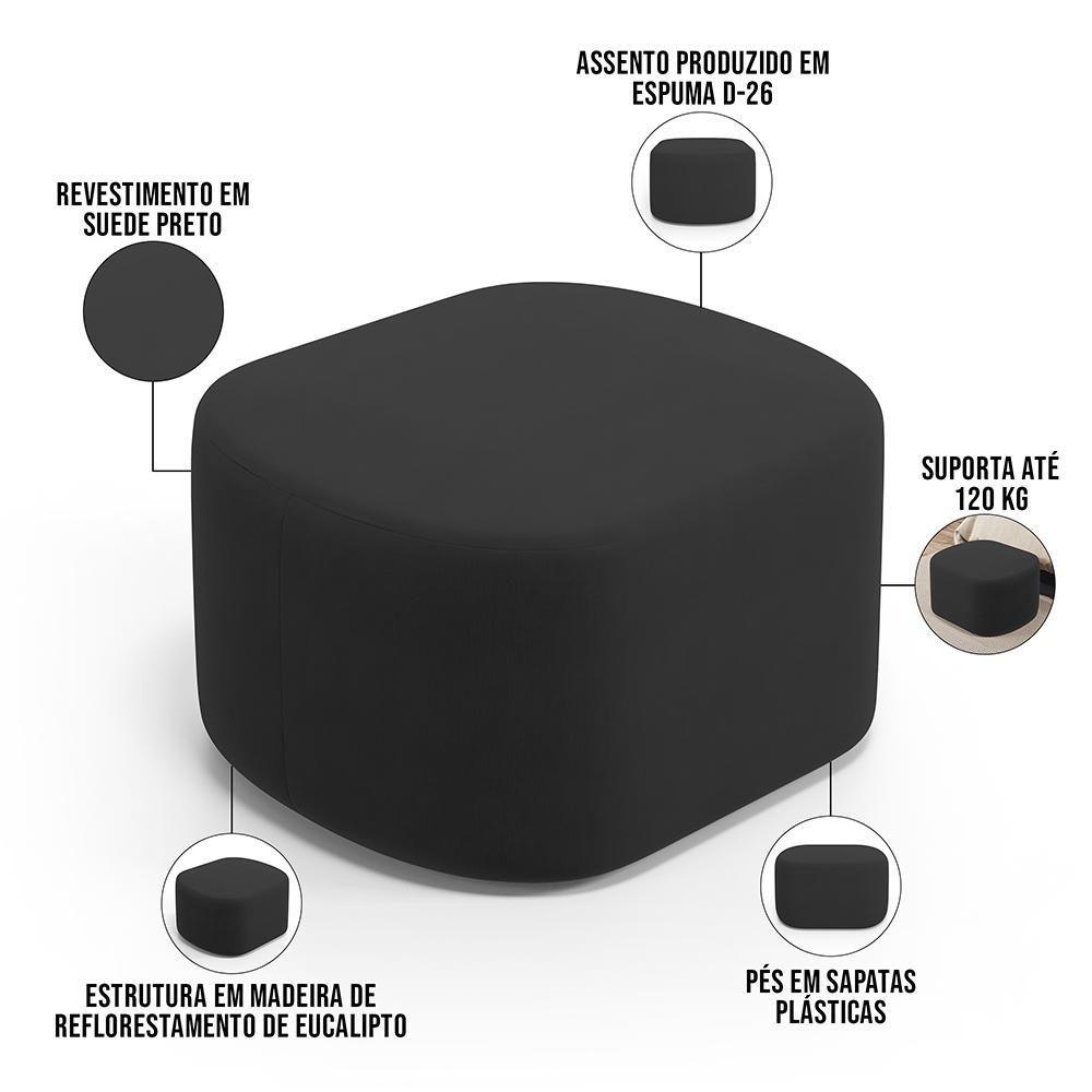 Puff Decorativo Orgânico Para Living Quarto 70cm Doha W01 Suede Preto - Lyam Decor