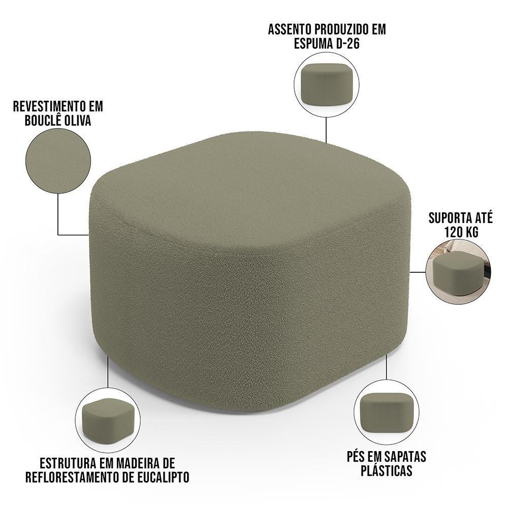 Puff Decorativo Orgânico Para Living Quarto 70cm Doha W01 Bouclê Verde Oliva - Lyam Decor