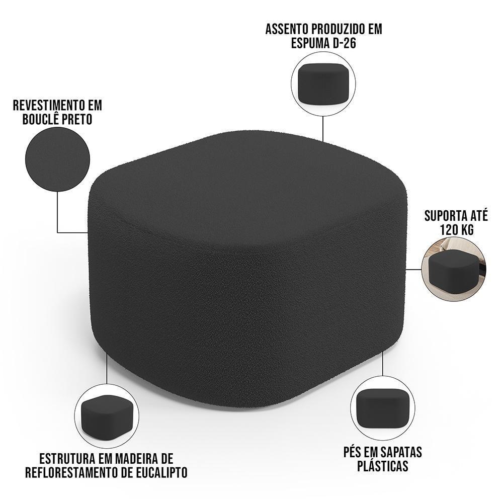 Puff Decorativo Orgânico Para Living Quarto 70cm Doha W01 Bouclê Preto - Lyam Decor