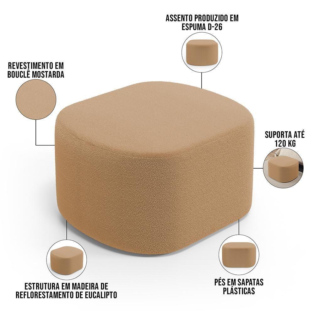 Puff Decorativo Orgânico Para Living Quarto 70cm Doha W01 Bouclê Mostarda - Lyam Decor