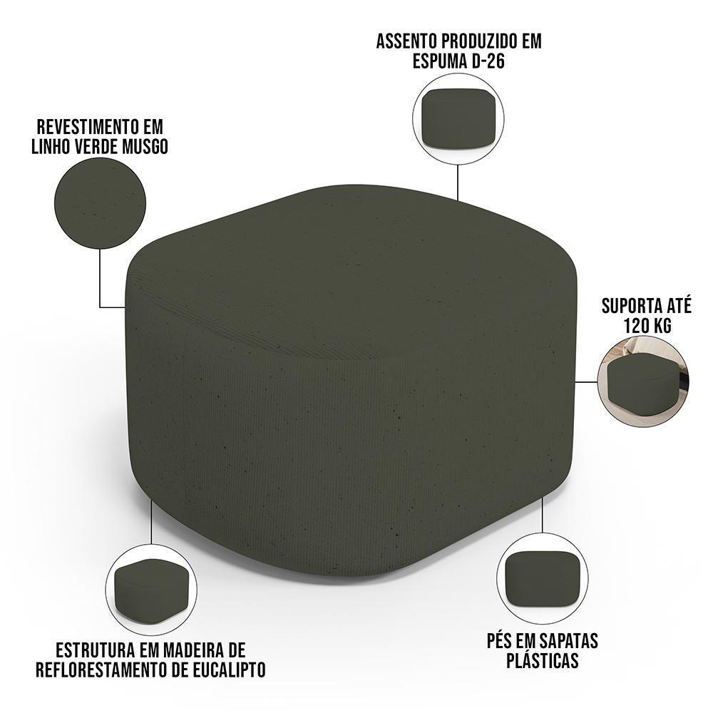 Puff Decorativo Orgânico Para Living Quarto 70cm Doha W01 Linho Verde Musgo - Lyam Decor