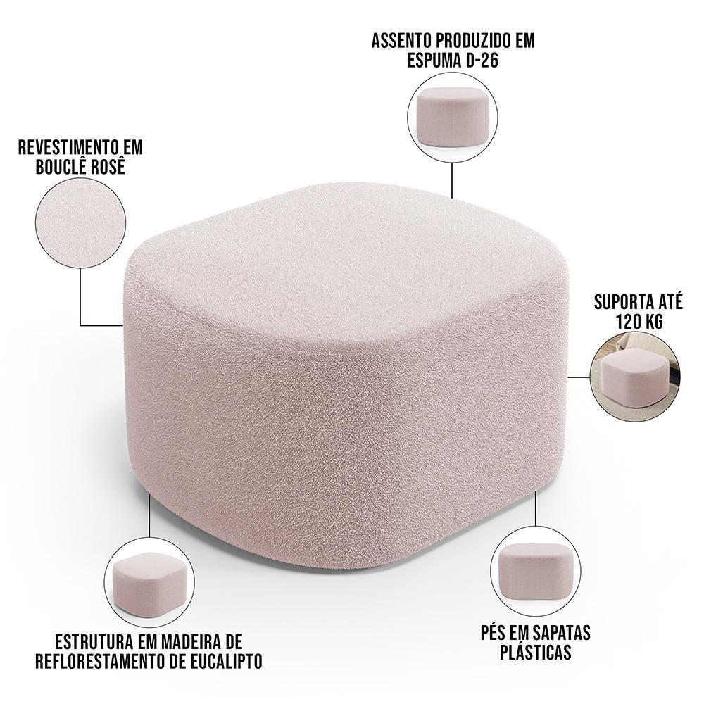Kit 2 Puffs Decorativos Orgânico Para Living Quarto 70cm Doha W01 Bouclê Rosê - Lyam Decor