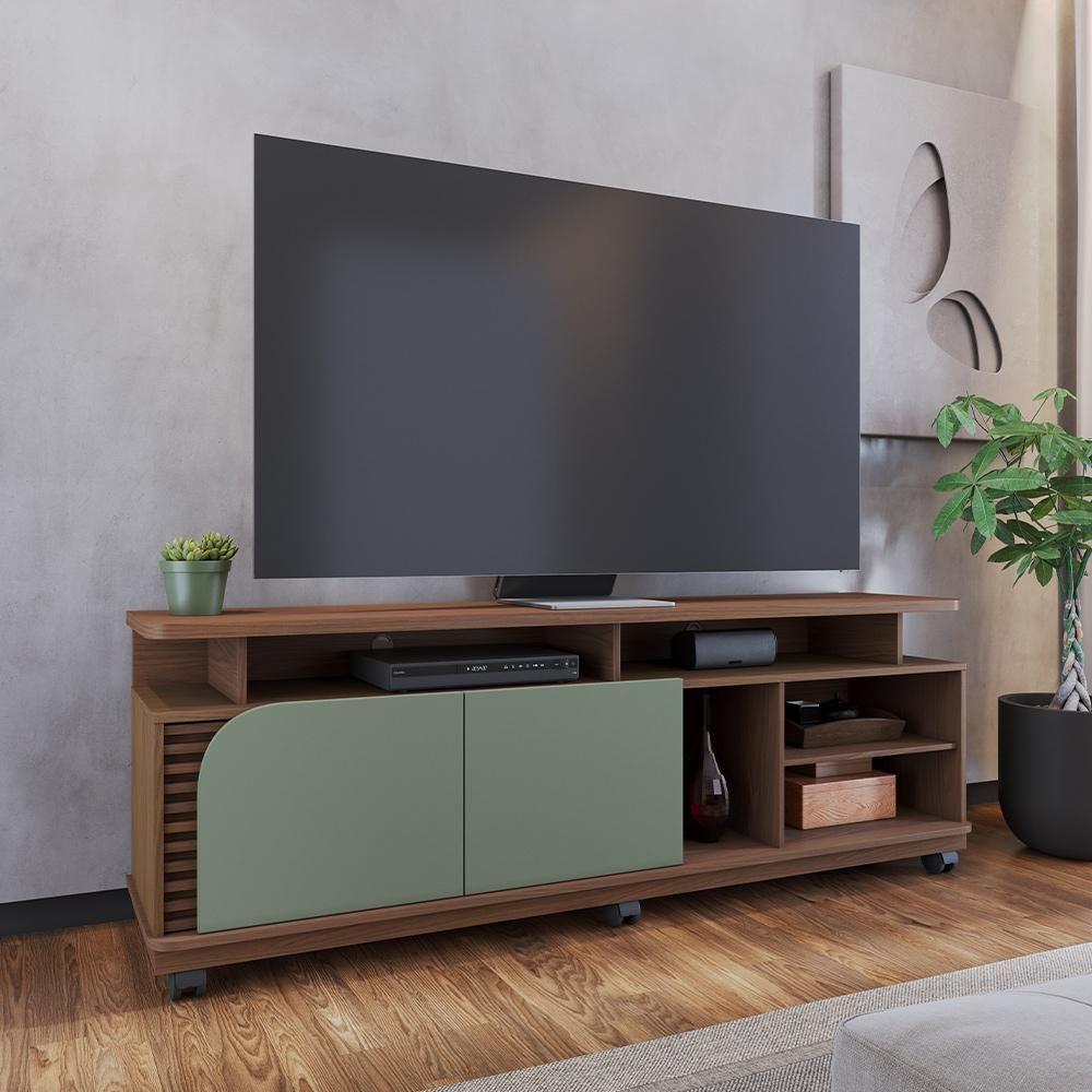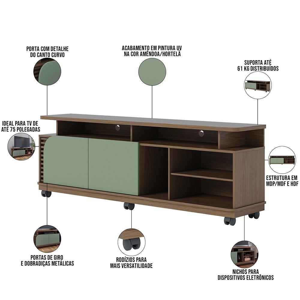 Rack Para Sala De Estar Tv 75 Pol Com Rodízios Laguna C04 Amêndoa Hortelã - Lyam Decor
