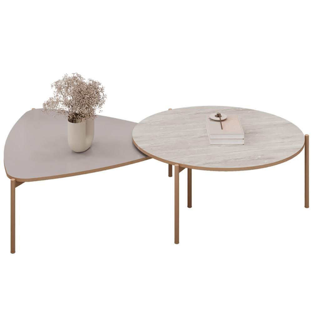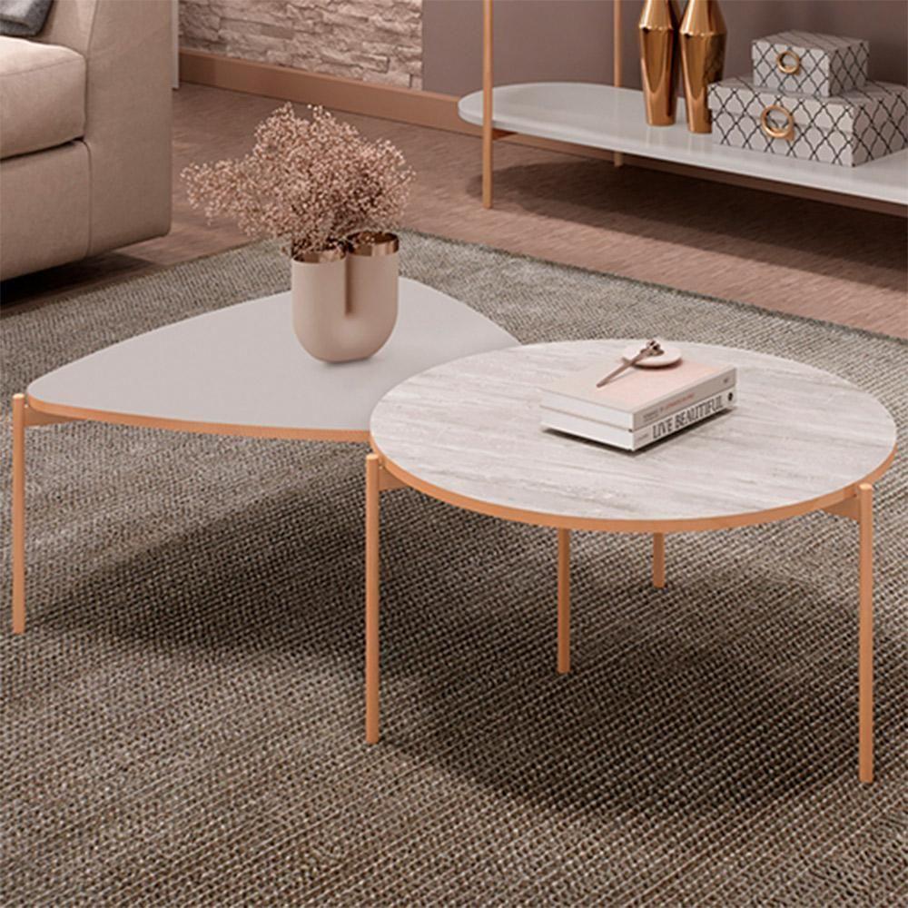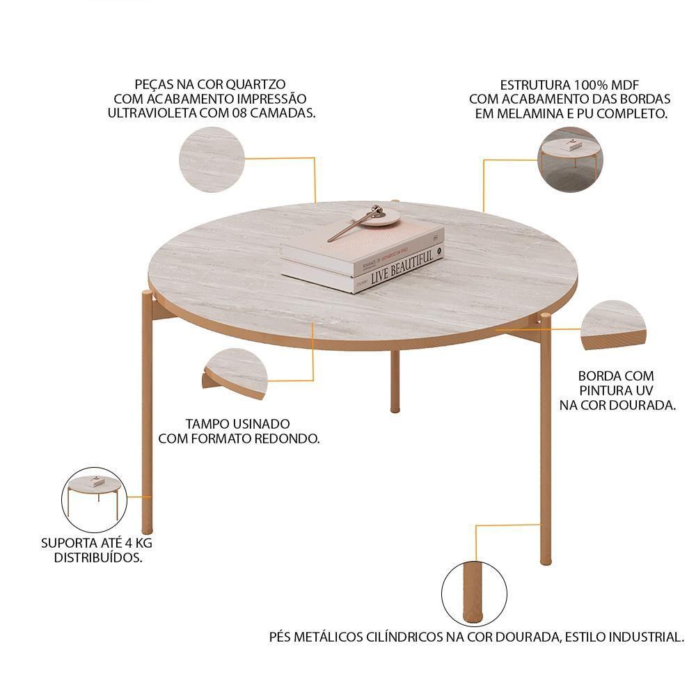 Kit Mesa De Centro Redonda Ellie E Mesa De Centro Trina D05 Bali Quartzo