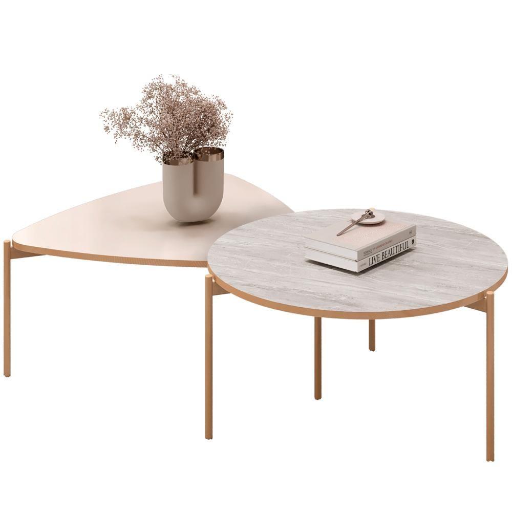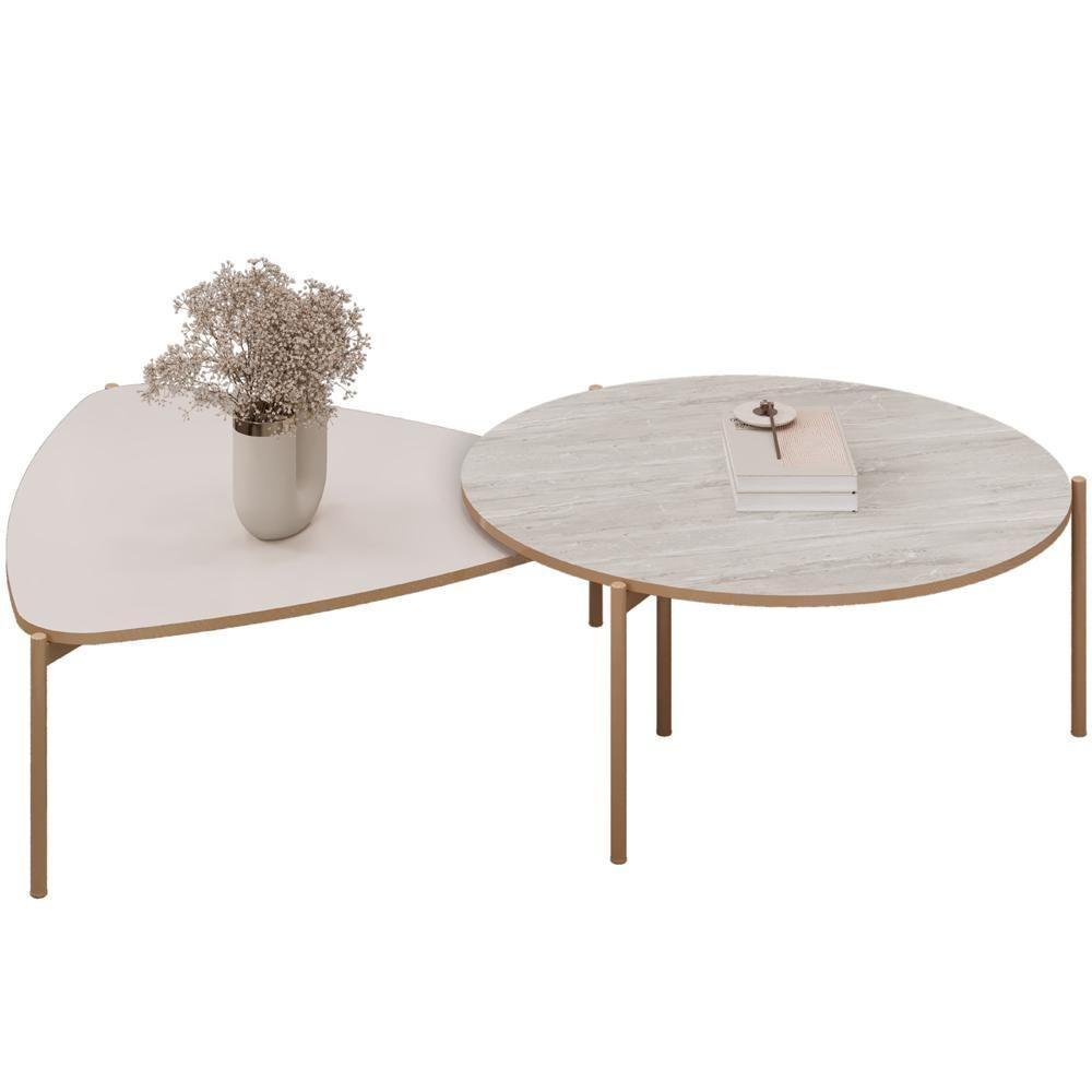 Kit Mesa De Centro Redonda Ellie E Mesa De Centro Trina D05 Off White Quartzo
