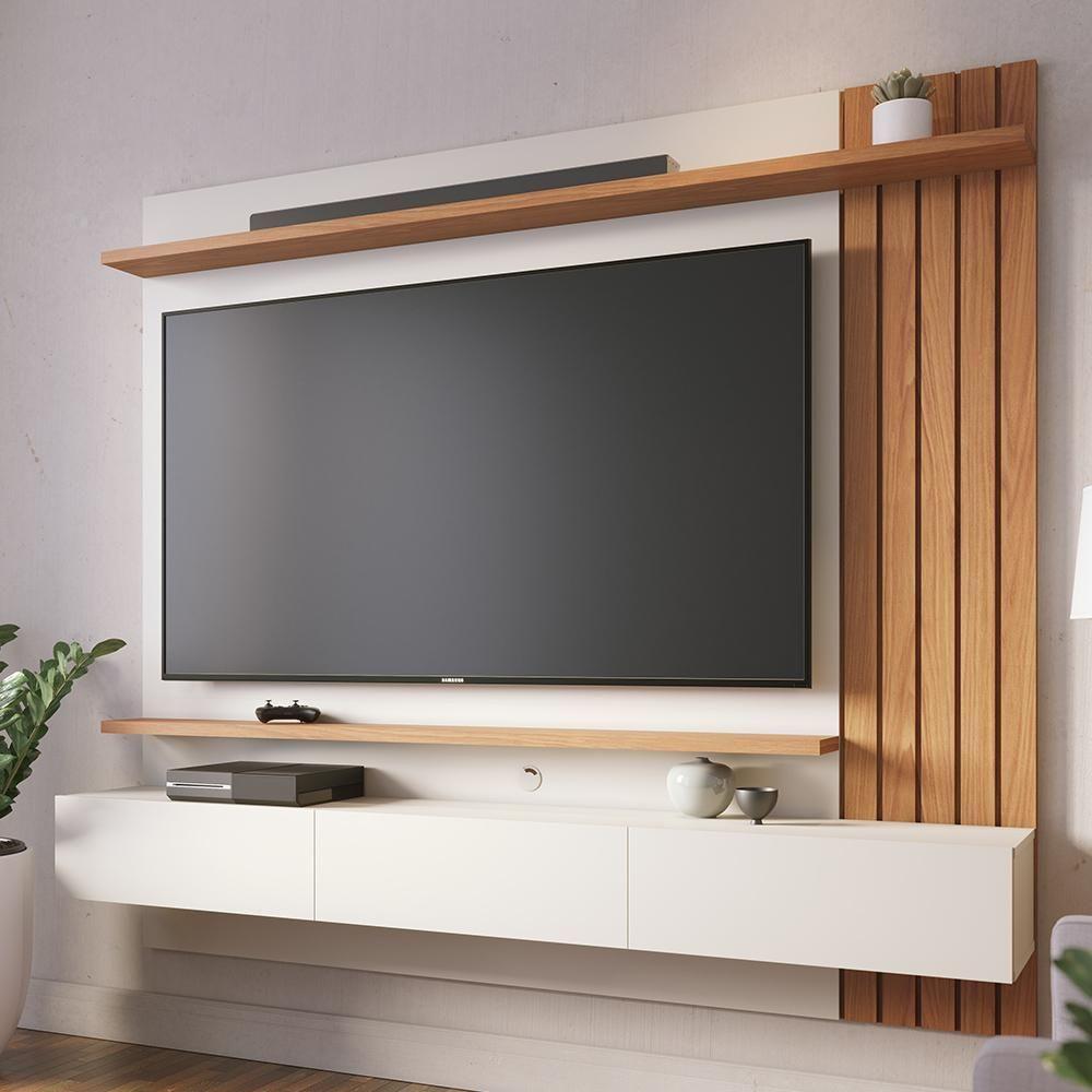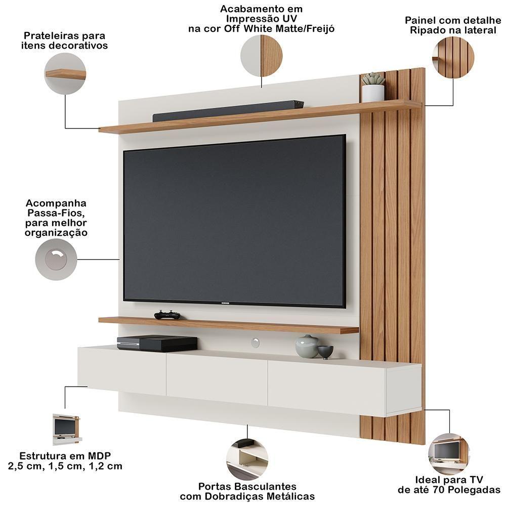 Painel Para Tv 70 Pol Com Bancada Suspensa 180cm Will C04 Off White Matte Freijó - Lyam Decor