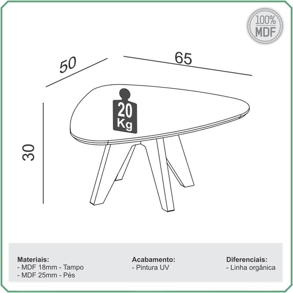 Kit 02 Mesas De Centro E 01 Mesa Lateral Orgânica Selly D03 Off White Freijó - Lyam DecorCom o Conjunto de 02 Mesas de Centro e 01 Mesa Lateral Orgânica Selly, da Lyam Decor, o seu ambiente ganhará uma nova definição de funcionalidade e elegância. Com design inovador, esse conjunto de mesa decorativa não é apenas um complemento, mas uma verdadeira obra de arte que transforma sua sala de estar em um ambiente acolhedor e sofisticado.Fabricadas em 100% MDF, a composição Selly combina resistência com um toque acolhedor, enquanto seus pés de 25mm garantem solidez e estabilidade. Já a suavidade das linhas orgânicas proporciona um contraste encantador com a estrutura robusta, criando um diálogo harmonioso entre forma e função; ideal para momentos de descontração, como para saborear um café, folhear um livro ou compartilhar risos com amigos. Deixe-se envolver por sua beleza e crie uma sala de estar moderna e cheia de estilo! Adicione ao seu carrinho e aproveite! Dimensões total da Mesa de Centro Baixa (L x A x P) 65 x 30 x 50 cm Dimensões total da Mesa de Centro Alta (L x A x P) 65 x 35 x 50 cm Dimensões total Mesa Lateral (L x A x P) 65 x 54,5 x 50 cm Características: Tampo em 100% MDF 18mm e pés MDF 25mm. Peça na tonalidade Off White Freijó com acabamento em pintura UV. Design orgânico com cantos arredondados e tampo chanfrado. Suporta até 20 kg distribuídos em cada, conforme manual. - Produto entregue desmontado, acompanha manual de montagem. - Este produto deve ser limpo com pano macio e seco. Não utilize produtos abrasivos como álcool e detergente, assim como esponjas rígidas ou palha de aço. - Proteja a superfície do móvel de objetos que transmitam calor ou umidade. Observações importantes: - Produto para uso residencial em ambiente interno, não devendo ficar exposto diretamente ao sol, calor e umidade excessivos. - Pode haver alguma diferença de tonalidade entre a imagem e o produto real, por conta do tratamento de imagens e a calibração de cores do seu monitor. - As imagens são meramente ilustrativas, não acompanham objetos de decoração e eletrônicos. - Ao receber a mercadoria, o cliente deve verificar as condições da embalagem, caso haja alguma não assine o de . - Montagem, desmontagem e outras instalações serão de responsabilidade do cliente. Não nos responsabilizamos, no ato da , por subir escadas/elevadores ou pelo por guincho em apartamentos. Eventuais despesas são de responsabilidade do comprador. - Confira as dimensões do produto e certifique-se de que passará normalmente por supostos elevadores, portas, escadas e/ou corredores de sua residência. Color: OFF WHITE | ColorFamily: Off White | ColorSimple: Off White | ColorSupplier: Off White Freijó | Cor: Off White Freijó | Material: MDF | MaterialFamily: MDF | Model: Selly | OriginCountry: | OriginState: PR | ProductContents: 02 Mesas de Centro, 01 Mesa Lateral | ProductHeight: 54 cm | ProductInstructions: Produto para uso em ambiente interno, nao devendo ficar exposto ao sol, calor e umidade excessivos. | ProductLength: 50 cm | ProductWarranty: 90 dias após o do produto | ProductWeight: 14 kg | ProductWidth: 54 cm | SizeDescription: Altura: 54 cm x Largura: 54 cm x Profundidade: 50 cm | SupplierSimpleName: Kit 02 Mesas de Centro e 01 Mesa Lateral Orgânica Selly D03 Off White Freijó - Lyam Decor