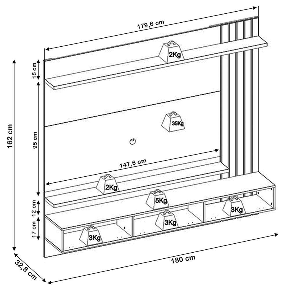 Painel Para Tv 70 Pol Com Bancada Suspensa 180cm Will C04 Amêndoa Off White Matte - Lyam DecorAprimore sua decoração com o Painel para TV com Bancada Suspensa Will 180cm, da Lyam Decor, a escolha ideal para quem valoriza um design minimalista e prático.Esse painel suspenso é uma solução perfeita para otimizar espaço de circulação, apresentando um formato clean que se adapta tanto à sala de estar quanto a quartos, sem abrir mão da elegância. As linhas simples são complementadas por ripados decorativos em uma das laterais, conferindo um toque de modernidade. Já as prateleiras superior e inferior são uma excelente opção para dar aquele toque pessoal, enquanto as duas portas basculantes oferecem amplo espaço interno para organizar seus objetos de maneira funcional e estilosa. Além disso, esse painel home é compatível com TVs de até 70 polegadas, ou seja, uma sala digna de cinema. Experimente a leveza e a sofisticação que o Painel Will traz ao seu dia a dia! Adicione ao seu carrinho e aproveite! Dimensões total do produto (L x A x P) 180 x 162 x 32,8 cm Medidas Internas Espaço livre para TV (L x A): 180 x 95 cm Altura entre a prateleira e a bancada: 12 cm Largura da prateleira inferior: 147,6 cm Características: Estrutura em MDP 25mm, 15mm e 12mm. Peças nas tonalidades Amêndoa e Off White Matte acabamento em pintura UV fosco. Ideal para TV de até 70 polegadas. 02 portas basculantes com dobradiças metálicas sem puxador. 02 prateleiras para itens decorativos. Detalhe ripado na lateral do painel. Possui passa fios para melhor organização dos cabos. Suporta até 48 kg distribuídos - Produto entregue desmontado, acompanha manual de montagem. Sistema de montagem: Cavilhas e parafusos. - Este produto deve ser limpo com pano macio e seco. Não utilize produtos abrasivos como álcool e detergente, assim como esponjas rígidas ou palha de aço. - Proteja a superfície do móvel de objetos que transmitam calor ou umidade. Observações importantes: - Produto para uso residencial em ambiente interno, não devendo ficar exposto diretamente ao sol, calor e umidade excessivos. - Pode haver alguma diferença de tonalidade entre a imagem e o produto real, por conta do tratamento de imagens e a calibração de cores do seu monitor. - As imagens são meramente ilustrativas, não acompanham objetos de decoração e eletrônicos. - Ao receber a mercadoria, o cliente deve verificar as condições da embalagem, caso haja alguma avaria não assine o comprovante de recebimento. - Montagem, desmontagem e outras instalações serão de responsabilidade do cliente. Não nos responsabilizamos, no ato da entrega, por subir escadas/elevadores ou pelo transporte por guincho em apartamentos. Eventuais despesas são de responsabilidade do comprador. - Confira as dimensões do produto e certifique-se de que passará normalmente por supostos elevadores, portas, escadas e/ou corredores de sua residência. Altura: 162 cm | Color: Amendoa Off White Matte | ColorFamily: Amêndoa | ColorSimple: Amêndoa | ColorSupplier: Amendoa Off White Matte | Com compartimento para alto-falantes: Não | Com rodas: Não | Cor: Amendoa Off White Matte | Formato do móvel: Painel Para TV | Largura: 180 cm | Materiais do corpo: MDP | Material: MDP | Material da estrutura: MDP | Material das corrediças: na | MaterialFamily: MDP | Model: Will | OriginCountry: Brasil | OriginState: PR | Peso: 57 Kg | ProductContents: 01 Painel, manual de montagem, acessórios | ProductHeight: 162 cm | ProductInstructions: Produto para uso em ambiente interno, nao devendo ficar exposto ao sol, calor e umidade excessivos. | ProductLength: 33 cm | ProductWarranty: 90 dias após o recebimento do produto | ProductWeight: 57 kg | ProductWidth: 180 cm | Profundidade: 33 cm | Quantidade de portas: 2 | Quantidade de prateleiras: 2 | Requer montagem: Sim | SizeDescription: Altura: 162 cm x Largura: 180 cm x Profundidade: 33 cm | SupplierSimpleName: Painel Para TV 70 Pol com Bancada Suspensa 180cm Will C04 Amêndoa Off White Matte - Lyam Decor | Tamanho máximo de TV: 70 Polegadas