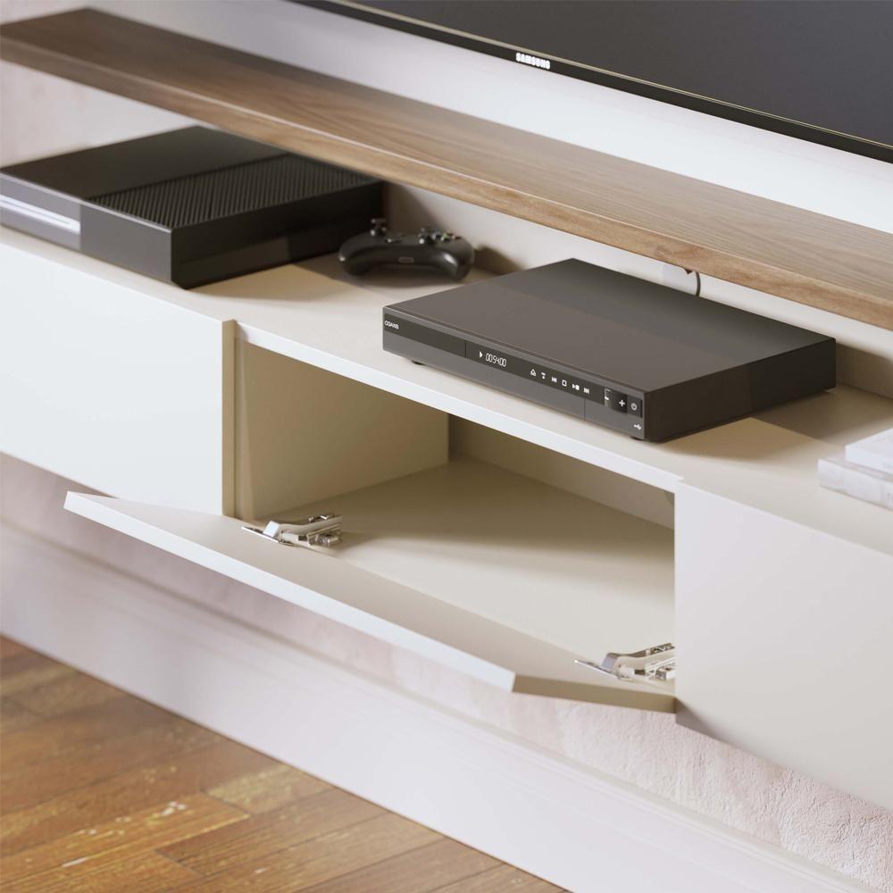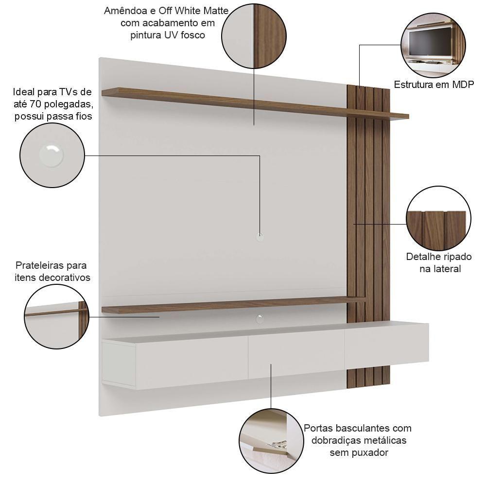 Painel Para Tv 70 Pol Com Bancada Suspensa 180cm Will C04 Amêndoa Off White Matte - Lyam Decor