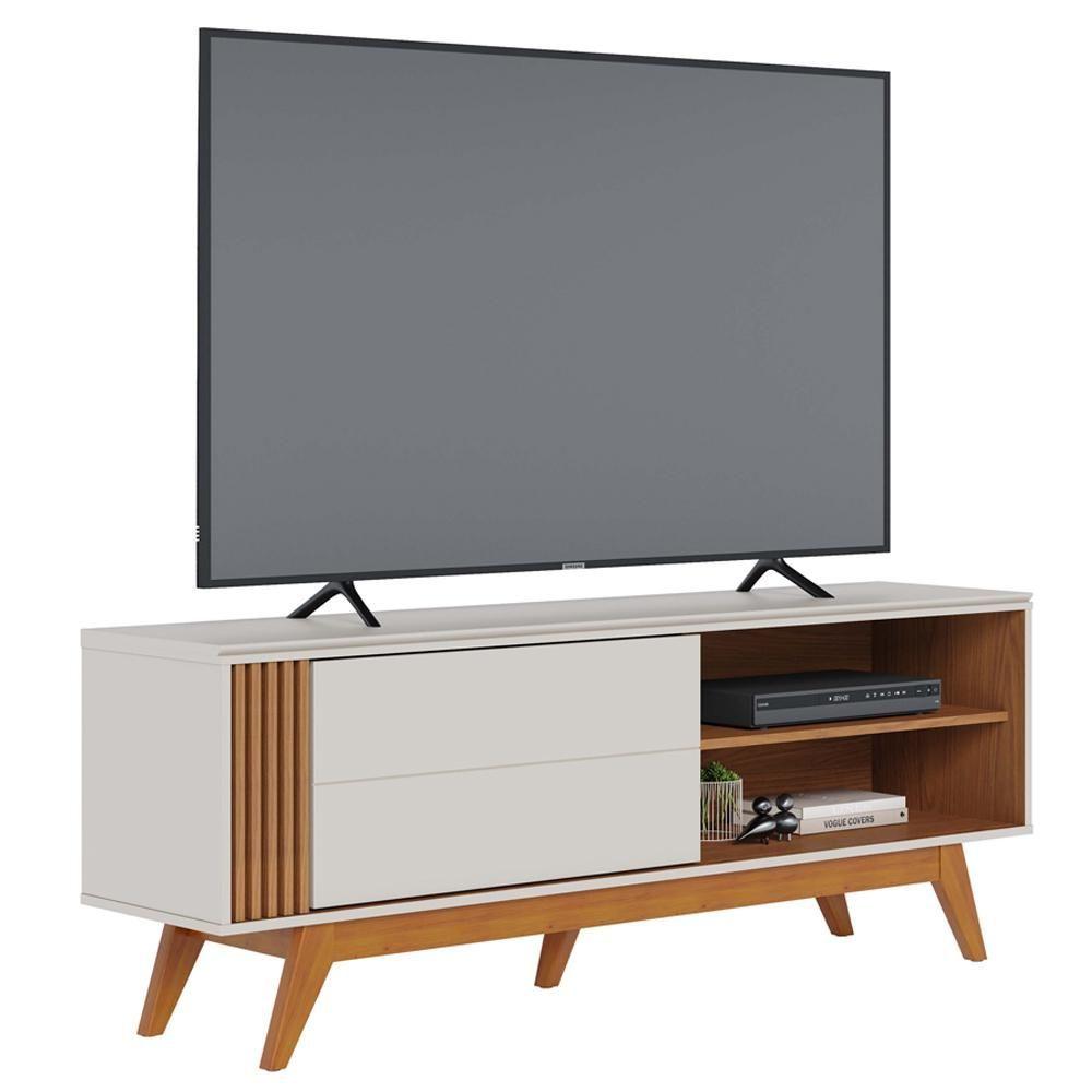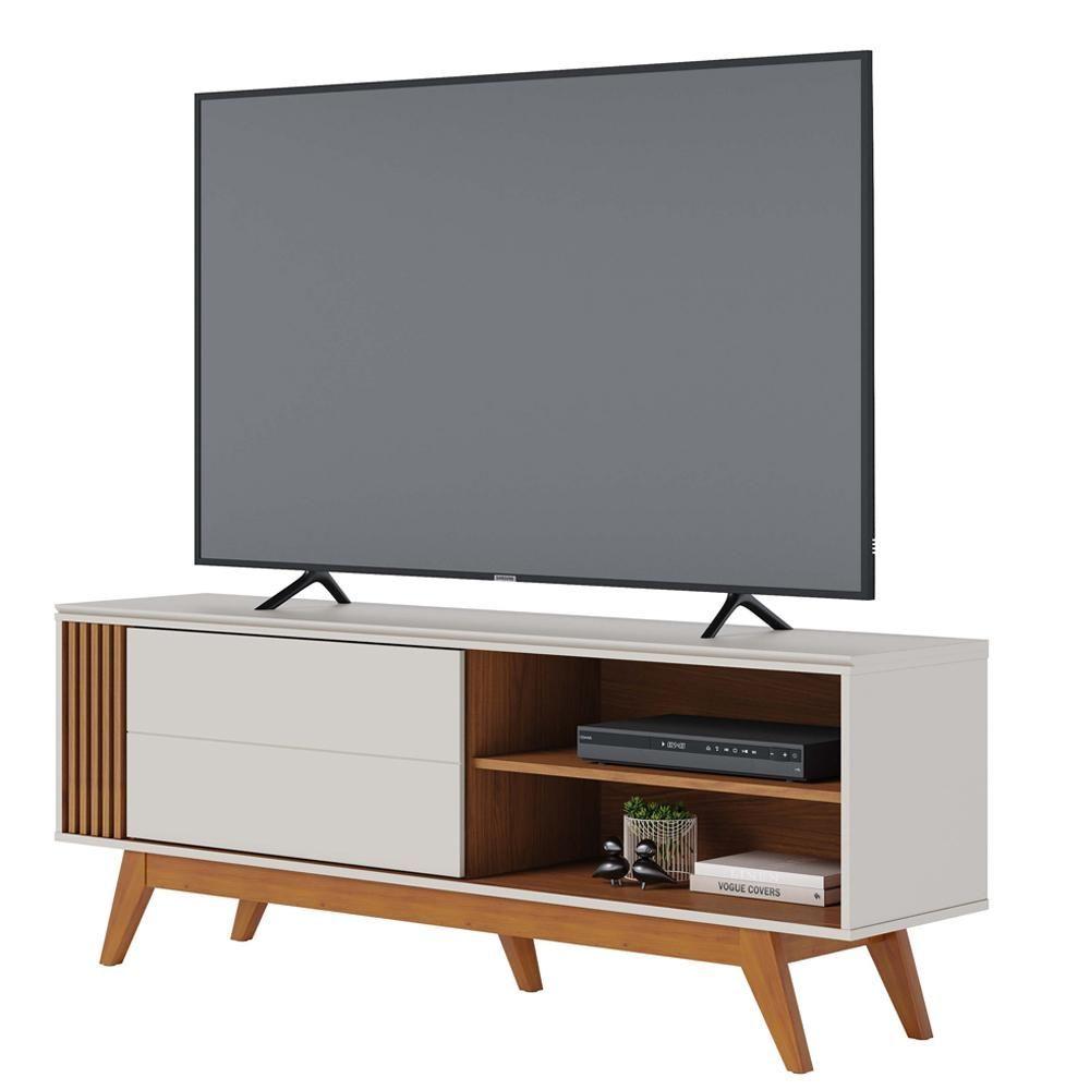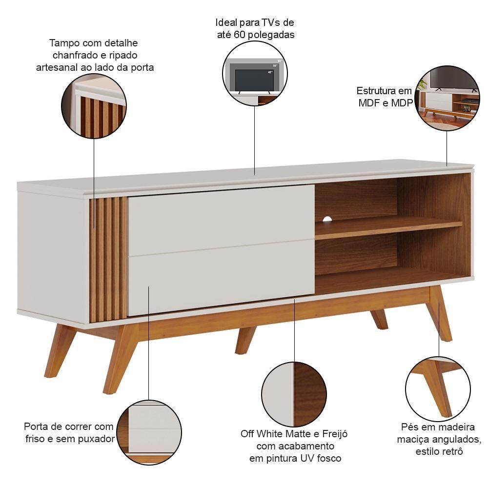 Rack Para Sala De Estar Tv 60 Pol Quebec C04 Off White Matte Freijó - Lyam Decor