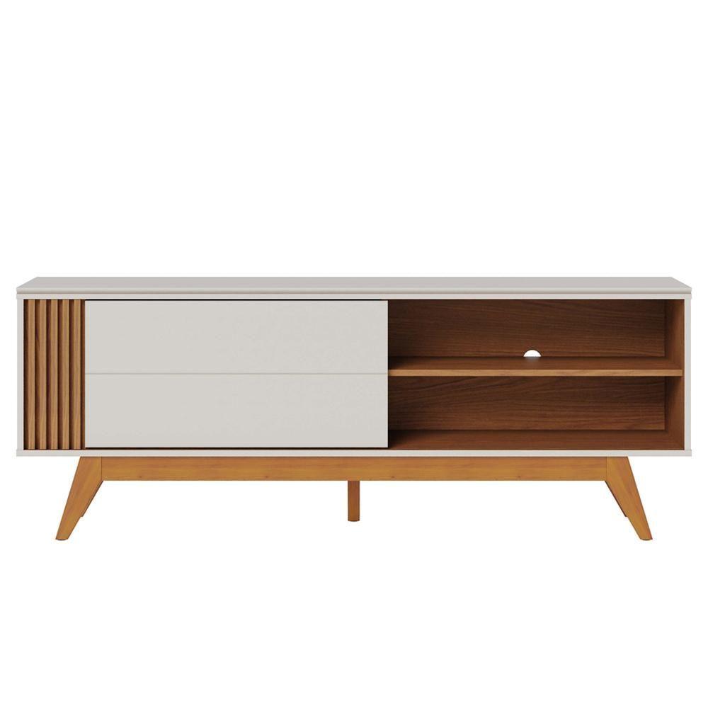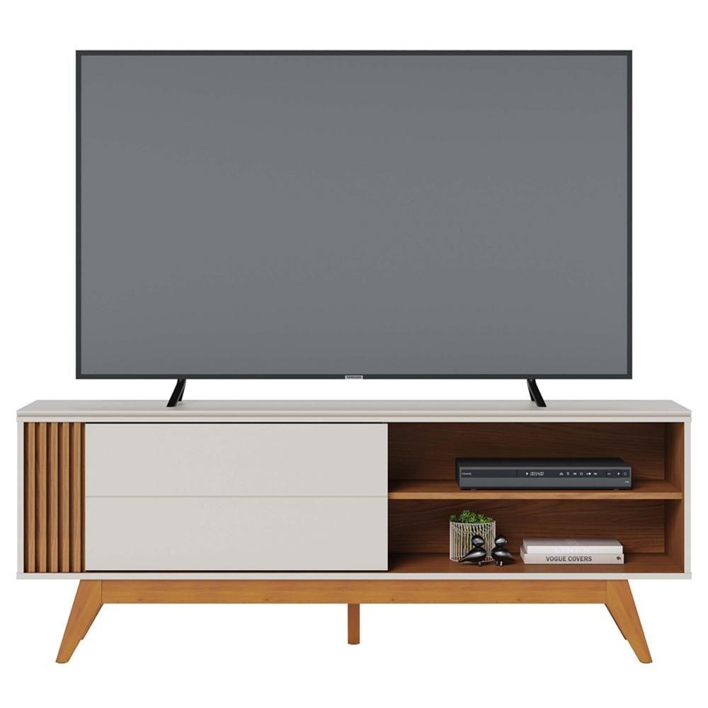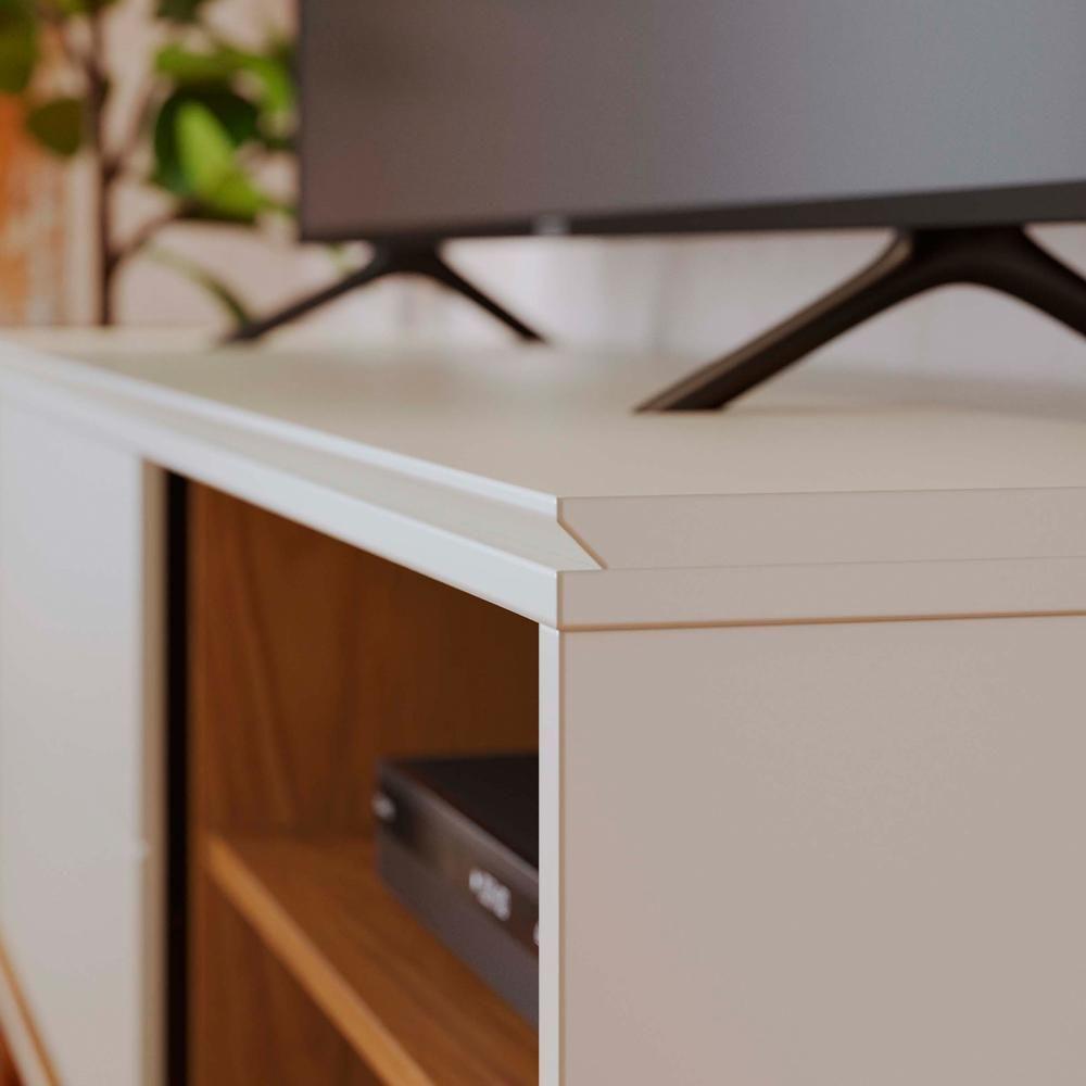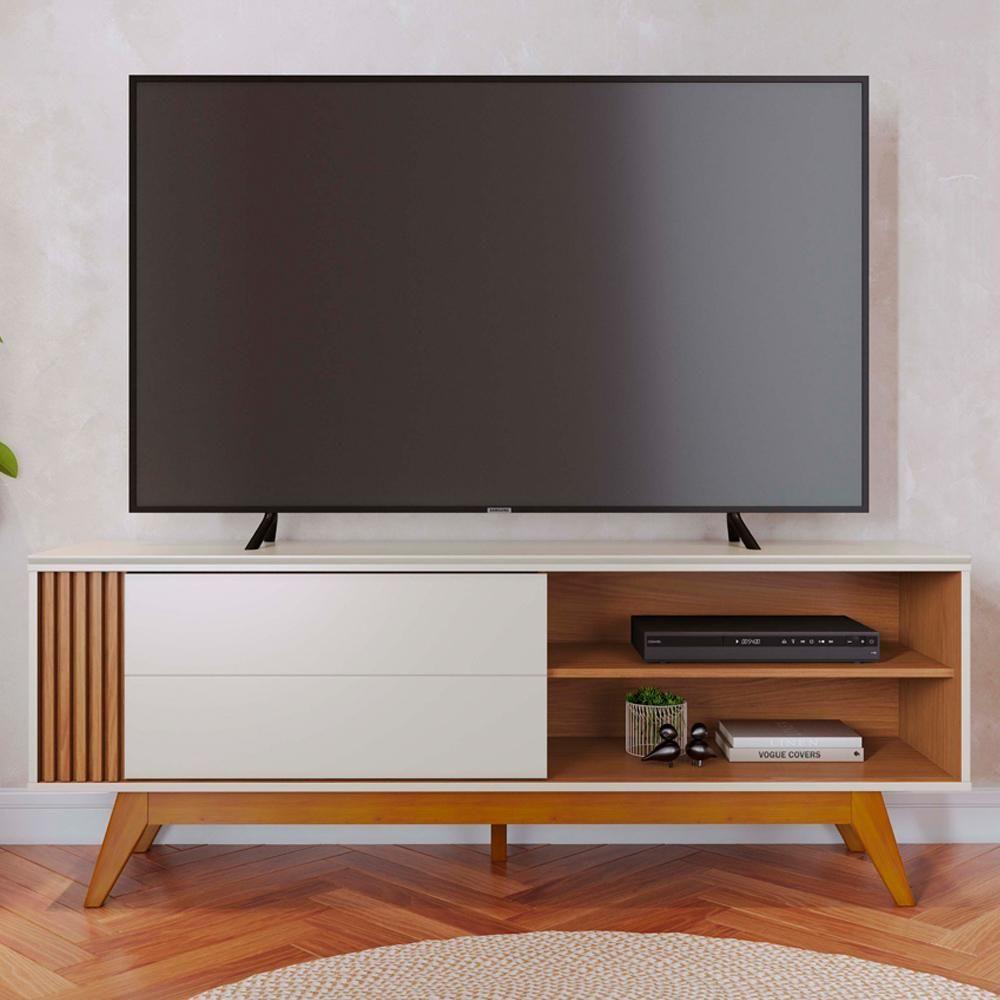 Rack Para Sala De Estar Tv 60 Pol Quebec C04 Off White Matte Freijó - Lyam Decor