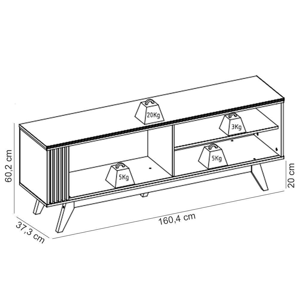 Rack Para Sala De Estar Tv 60 Pol Quebec C04 Off White Matte Freijó - Lyam DecorCom um design clássico e atemporal, o Rack para Sala de Estar Quebec, da Lyam Decor, é um verdadeiro símbolo de elegância e funcionalidade, sem contar que se adapta perfeitamente a qualquer estilo de decoração, seja moderno, rústico ou minimalista.Os detalhes ripados são o destaque desse móvel, já que adiciona textura e sofisticação ao ambiente, enquanto os pés retrô em madeira maciça oferece uma estética convidativa. Para completar, os espaços de armazenamento garantem a organização prática de seus objetos, seja na parte interna ou nos nichos para aparelhos eletrônicos. O Quebec não é apenas um rack bancada; é uma peça que transforma sua sala de estar em um refúgio de bom gosto e charme. Redefina seu espaço com um toque de beleza e funcionalidade! Adicione ao seu carrinho e surpreenda-se! Dimensões total do produto (L x A x P) 160,4 x 60,2 x 37,3 cm Características: Nichos (L x A): 70,5 x 17 cm Altura dos pés: 20 cm Características: Estrutura em MDP 12mm e 15mm, MDF 12mm e 15mm, HDF 3mm. Peças nas tonalidades Off White Matte e Freijó com acabamento em pintura UV fosco. Ideal para TV de até 60 polegadas. 01 porta de correr com friso e sem puxador. 02 nichos para aparelhos eletrônicos ou itens decorativos. Tampo com detalhe chanfrado e ripado artesanal ao lado da porta. Possui passa fios para melhor organização dos cabos. Pés em madeira maciça angulados, estilo retrô. Suporta até 33 kg distribuídos - Produto entregue desmontado, acompanha manual de montagem. Sistema de montagem: Cavilhas e parafusos. - Este produto deve ser limpo com pano macio e seco. Não utilize produtos abrasivos como álcool e detergente, assim como esponjas rígidas ou palha de aço. - Proteja a superfície do móvel de objetos que transmitam calor ou umidade. Observações importantes: - Produto para uso residencial em ambiente interno, não devendo ficar exposto diretamente ao sol, calor e umidade excessivos. - Pode haver alguma diferença de tonalidade entre a imagem e o produto real, por conta do tratamento de imagens e a calibração de cores do seu monitor. - As imagens são meramente ilustrativas, não acompanham objetos de decoração e eletrônicos. - Ao receber a mercadoria, o cliente deve verificar as condições da embalagem, caso haja alguma avaria não assine o comprovante de recebimento. - Montagem, desmontagem e outras instalações serão de responsabilidade do cliente. Não nos responsabilizamos, no ato da entrega, por subir escadas/elevadores ou pelo transporte por guincho em apartamentos. Eventuais despesas são de responsabilidade do comprador. - Confira as dimensões do produto e certifique-se de que passará normalmente por supostos elevadores, portas, escadas e/ou corredores de sua residência. Altura: 60 cm | Color: Off White Matte Freijó | ColorFamily: Off White | ColorSimple: Off White | ColorSupplier: Off White Matte Freijó | Com compartimento para alto-falantes: Não | Com rodas: Não | Cor: Off White Matte Freijó | Formato do móvel: Rack | Largura: 160 cm | Materiais do corpo: MDPMDF | Material: MDPMDF | Material da estrutura: MDPMDF | Material das corrediças: na | MaterialFamily: MDPMDF | Model: Quebec | OriginCountry: Brasil | OriginState: PR | Peso: 31 Kg | ProductContents: 01 Rack, manual de montagem, acessórios | ProductHeight: 60 cm | ProductInstructions: Produto para uso em ambiente interno, nao devendo ficar exposto ao sol, calor e umidade excessivos. | ProductLength: 37 cm | ProductWarranty: 90 dias após o recebimento do produto | ProductWeight: 31 kg | ProductWidth: 160 cm | Profundidade: 37 cm | Quantidade de portas: 1 | Quantidade de prateleiras: 1 | Requer montagem: Sim | SizeDescription: Altura: 60 cm x Largura: 160 cm x Profundidade: 37 cm | SupplierSimpleName: Rack Para Sala de Estar TV 60 Pol Quebec C04 Off White Matte Freijó - Lyam Decor | Tamanho máximo de TV: 60 Polegadas