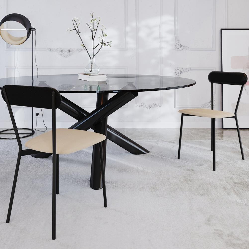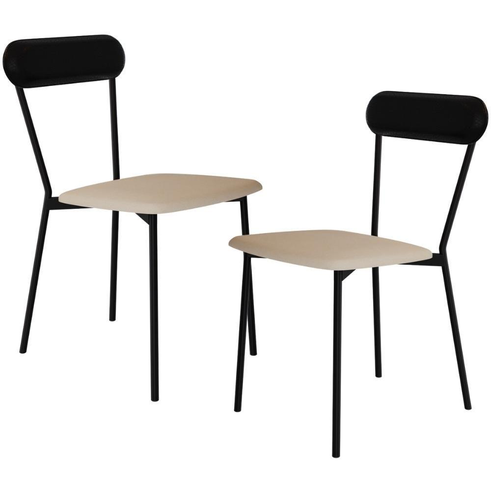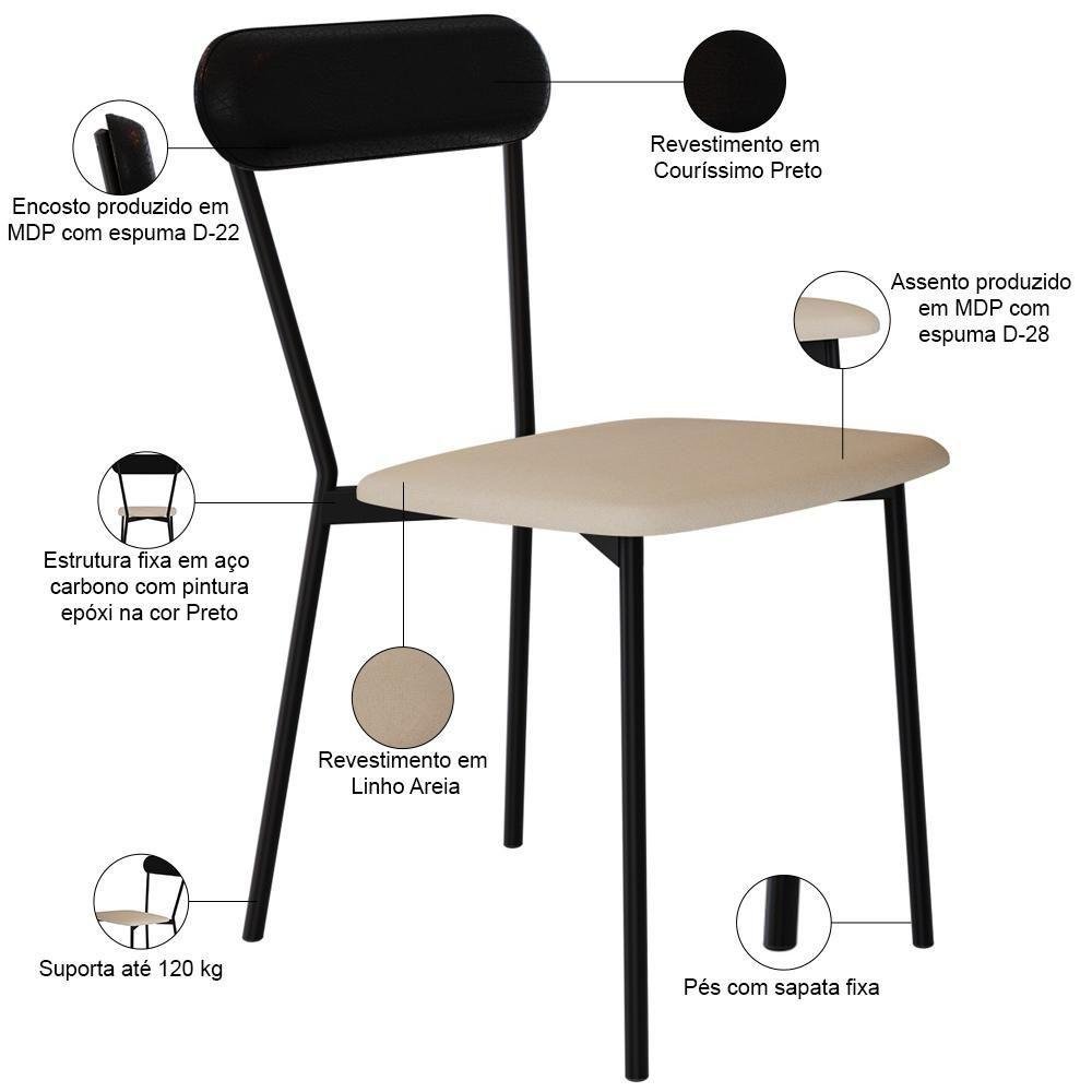 Kit 02 Cadeiras Estofada Para Sala De Jantar Liora Preto C01 Linho Areia Courino Preto - Lyam Decor