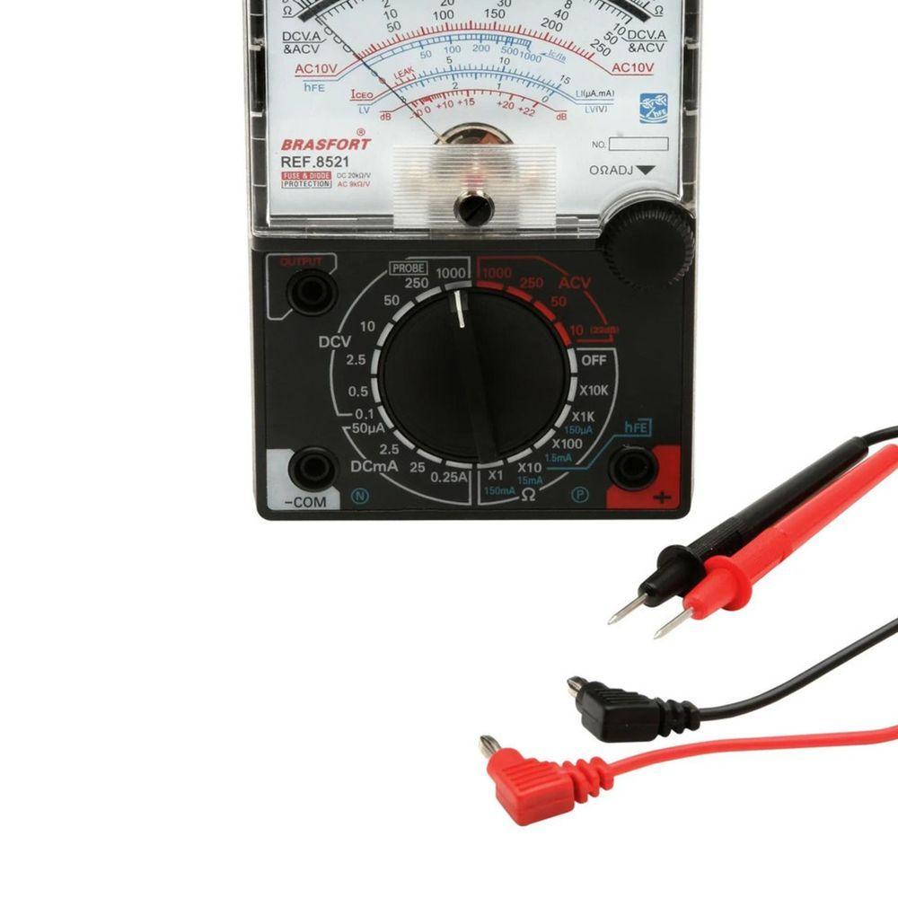 Multímetro Analógico Ft360 BrasfortMultímetro Analógico FT360 hobby. Display:AnalógicoIlumi/Barra Graf.:NãoTensão DC:100mV/500mV/2,5V/10V/50V/250V/1000VTensão AC:10V/50V/250V/1000VCorrente DC:50µA/2,5mA/250mAResistência:x1/x10/x1k/x10k OhmsTemperatura:Não possuiCapacitância:Não possuiFrequência:Não possuiDuty Cycle:Não possuiTeste Continuidade:Sim (C/D)Auto Desligamento:Não possuiMudança de Faixa:Não possuiPrecisão Básica:4% + 1Categoria:Residencial/HobbyDimensões:100 x 150 x 30mmPesquisa:multimetro|analogico|ft-360|ft 360|ft360
