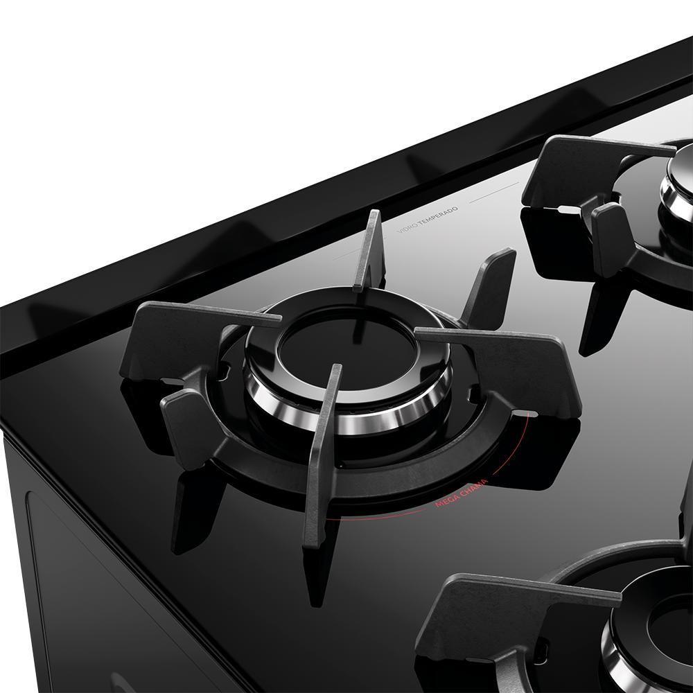 Fogão 4 Bocas Dako Supreme Glass Com Mesa Vidro Preto Bivolt