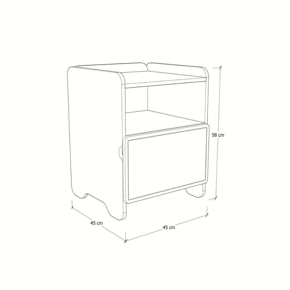 Mesa De Cabeceira 1 Gaveta Com Nicho Cindy - AzulMesa de Cabeceira Cindy – Modernidade, Elegância e Funcionalidade no Seu QuartoA Mesa de Cabeceira Cindy é a escolha perfeita para quem busca um móvel moderno, elegante e versátil. Seu design sofisticado se adapta a diferentes estilos de decoração, adicionando um toque de charme e praticidade ao ambiente.Equipada com 1 gaveta de fácil abertura e amplo espaço interno, ela permite armazenar objetos essenciais com organização e discrição. Além disso, seu nicho espaçoso é ideal para acomodar livros, decorações ou itens do dia a dia, tornando tudo mais acessível.Disponível em diversas opções de cores, a Mesa de Cabeceira Cindy combina perfeitamente com qualquer ambiente, trazendo harmonia e personalidade ao seu espaço.Fabricada inteiramente em MDF de alta qualidade, esse móvel oferece resistência e durabilidade, garantindo um acabamento impecável e um produto que mantém sua beleza e funcionalidade por muito mais tempo.Especificações Técnicas:> Altura Total(cm): 58,00> Profundidade Total(cm): 45,00> Largura Total(cm): 45,00> Material: 100% MDF> Corrediças metálicas> Peso máximo por gaveta: 5kg> Peso máximo por prateleira: 10kg> Suporta até 40kg> Peso: 20,9kg> Itens inclusos: 1 Mesa de cabeceira+ 1 Kit de ferragens + 1 Manual de Montagem> Sistema de montagem: Parafusos, cavilhas, tambores de fixação e minifix> Recomendações uso: Limpar somente com um pano levemente umedecido. Indicado para ambientes internos.Importante: Produto enviado desmontado acondicionado em caixa de papelão reforçada, acompanha manual de montagem (não nos responsabilizamos pela montagem do produto).> Observações de Entrega: Os entregadores não são autorizados:> Entrar no domicílio, sem estar acompanhado pelo cliente;> Entrar ou subir desacompanhado em prédio residencial ou comercial, o cliente precisa receber o pedido na portaria;> Entregar por meios alternativos (exemplo: içar produto por janela, subir escadas);> Entregar em edifícios, entrega será realizada apenas na portaria;> Realizar montagens, instalação ou manutenção de produtos;> Abrir a embalagem do produto;> Realizar entrega em endereço diferente do que consta na Nota Fiscal;> Garantia: 03 Meses Contra Defeitos de Fabricação.Cor: Azul | Quantidade de Gavetas: 1 | Altura: 58 | Produto: Mesa de Cabeceira Cindy | Largura: 45 | Tamanho: 58x45x45 | Número do modelo: 1 | Peso do Produto: 20,9 | Tonalidade: Azul