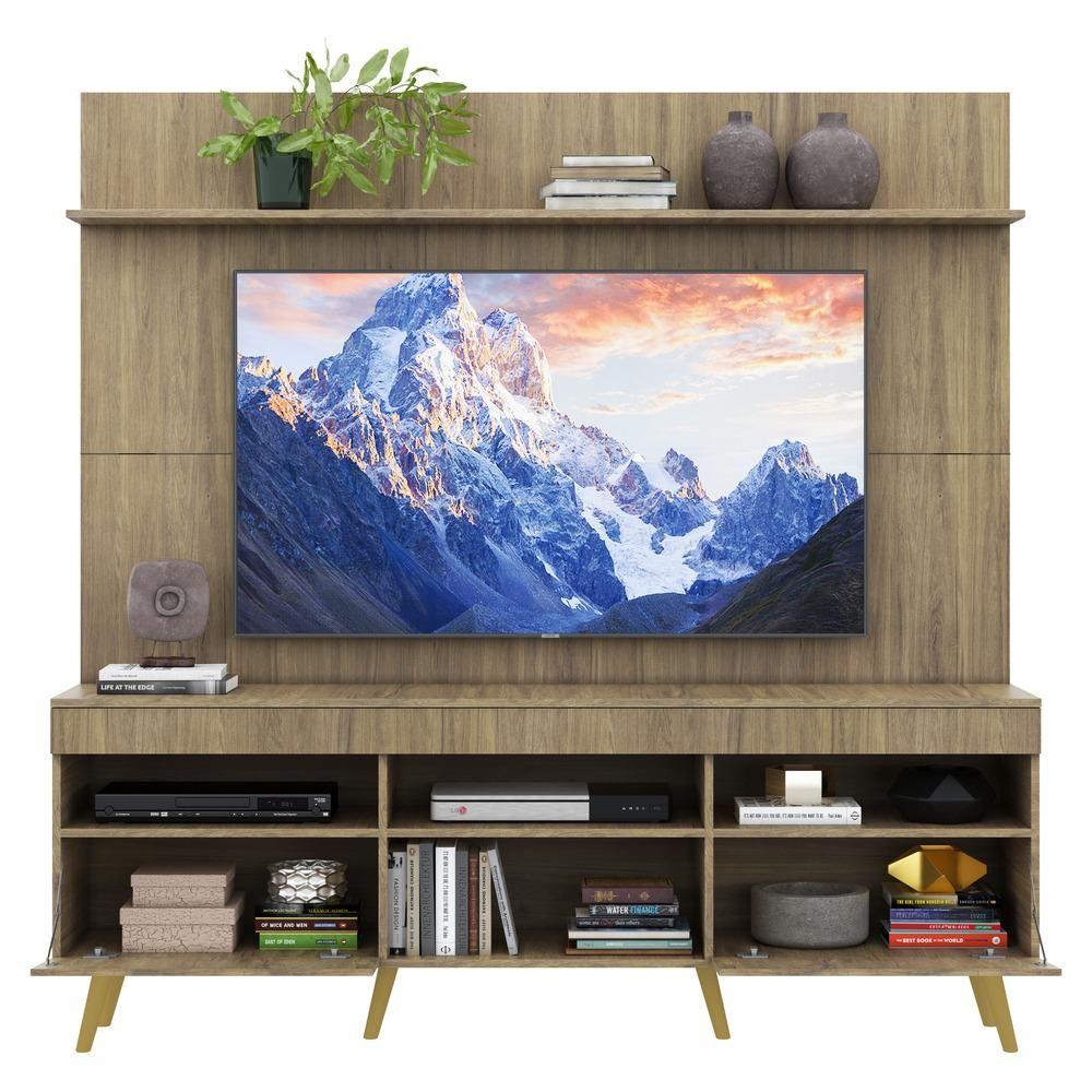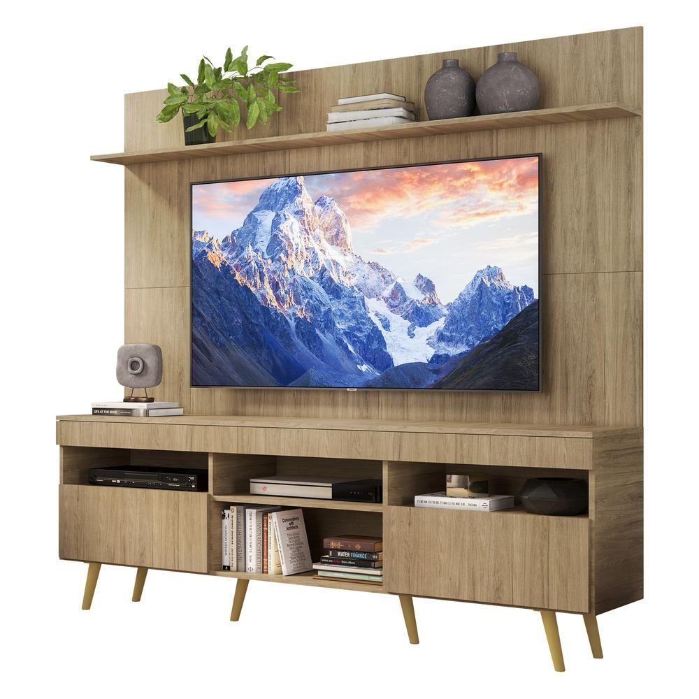 Rack Com Painel e Suporte Tv 6 Com Prateleira e Pés Retrô