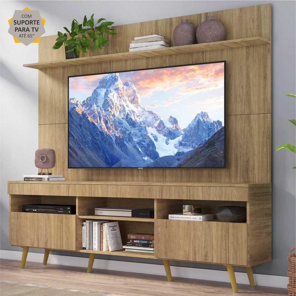 O Rack com Painel e Suporte 65" Madri Multimóveis Pés Retrô e Prateleira é produzido em MDP com acabamento acetinado, que garante maior durabilidade e facilidade na limpeza. Possui 4 nichos com espaço para os equipamentos eletrônicos e objetos decorativos, 2 portas articuladas com um amplo espaço interno para manter seus pertences organizados e os pés palito, estilo retrô, em polipropileno, que dão um charme especial ao móvel deixando-o com um visual leve e permitindo você compor um ambiente com ar vintage e moderno ao mesmo tempo. O painel para de até 65” (suporta até 30 kg) com espaçamento para passagem dos fios, que permite deixar os cabos mais organizados e o visual clean, ainda possui uma prateleira para os objetos decorativos. Para facilitar a sua vida, este produto acompanha também o kit para fixação da . Muito prático e de fácil instalação, pode ser utilizado para ’s LCD, LED e plasma de 14” a 71”. Totalmente sobreposto, acompanha gabarito de montagem que auxilia na instalação. Conta com um sistema de encaixe rápido, possui 16mm de deslocamento que permite o ajuste do encaixe das peças. Uma ótima opção para deixar sua sala linda e confortável para curtir os melhores filmes e séries.Conteúdo da Embalagem:1 (um) Rack com Painel para e Prateleira1 (um) kit com 6 (seis) pés retrô1 (um) Kit com suporte para Dimensões do produto montado:Altura: 180cm | Largura: 175cm | Profundidade: 35cm*Devido as variações de tamanho dos televisores no mercado, sugerimos que verifique as medidas da sua e compare com o painel antes de efetuar a compra.*Você pode consultar as medidas internas na imagem técnica do produto.As cores do produto podem sofrer variações de tonalidade de acordo com as configurações do seu dispositivo.Imagem meramente ilustrativa. Decoração e eletros não acompanham o produto. O produto será entregue desmontado e não disponibilizamos o de montagem.